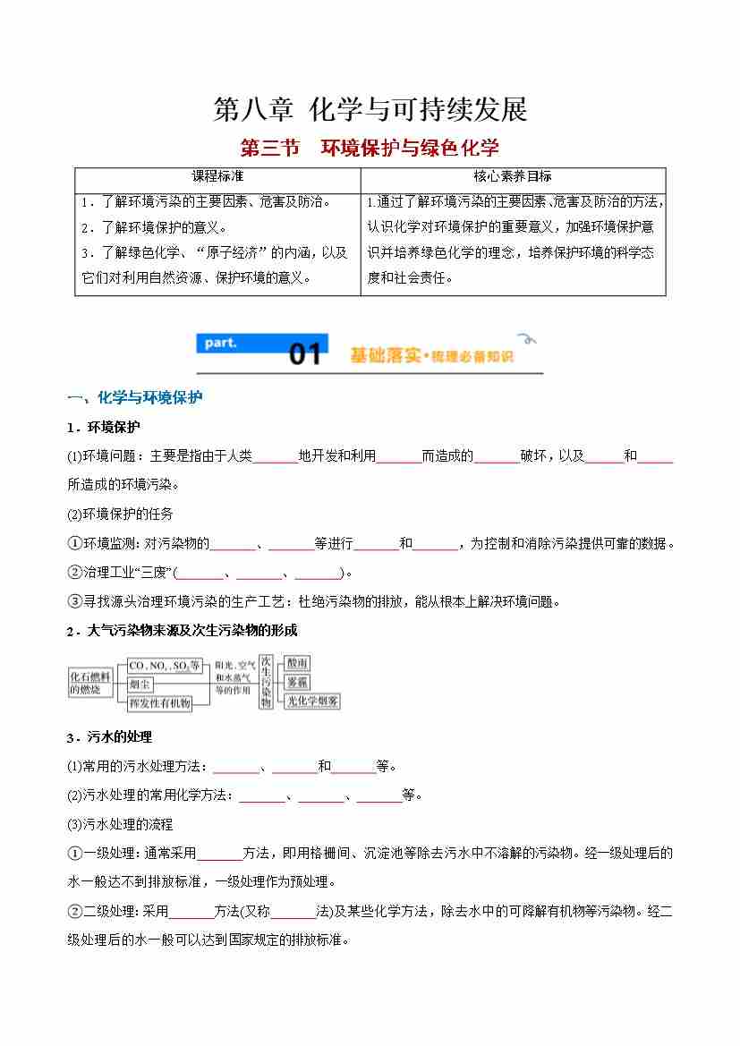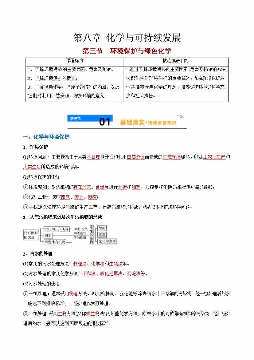 8.3 环境保护与绿色化学 -(人教版必修第二册)(学生版)