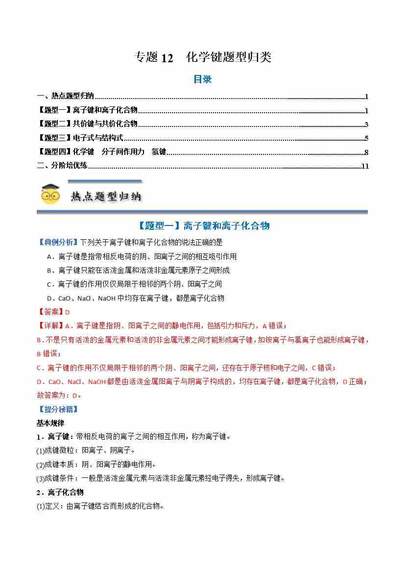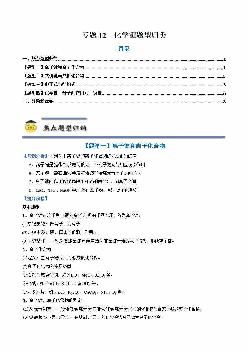 专题12 化学键-(人教版2019必修第一册)(学生版)