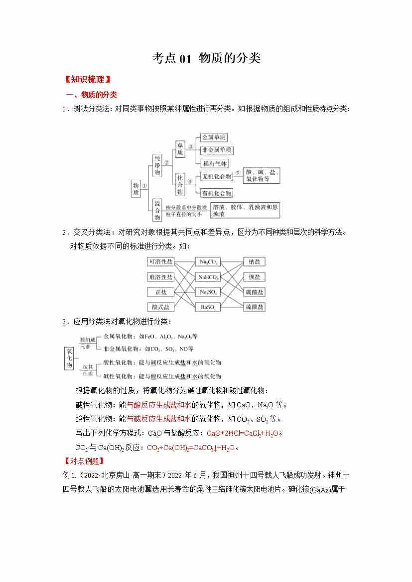 考点01- 物质的分类-(学生版)