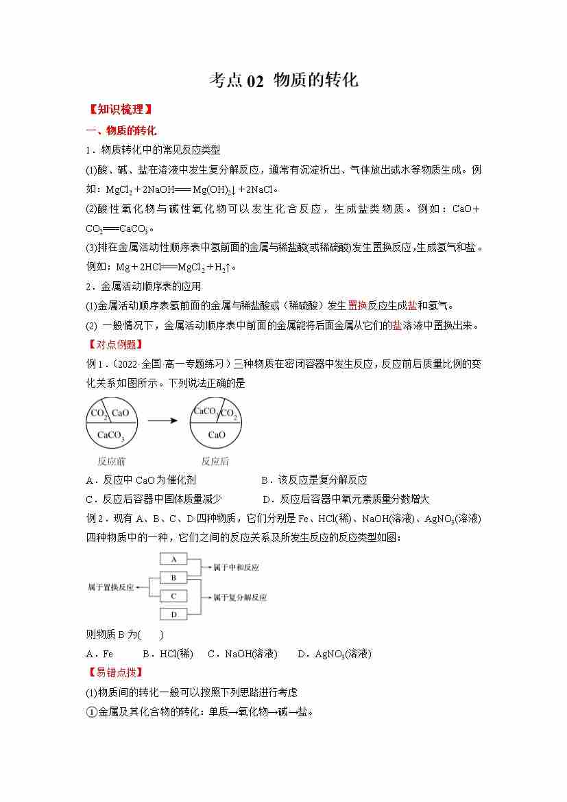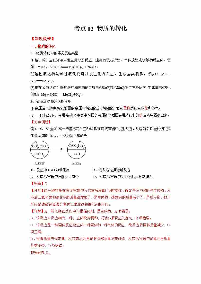 考点02- 物质的转化-(学生版)