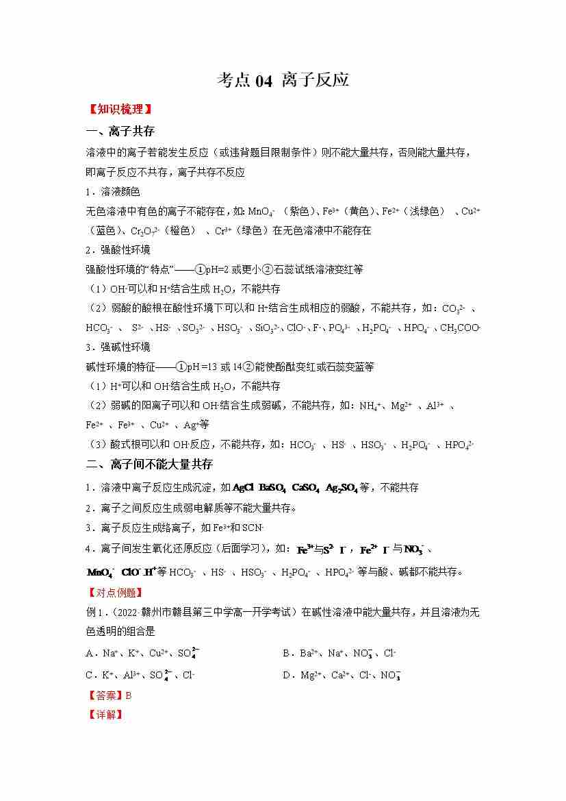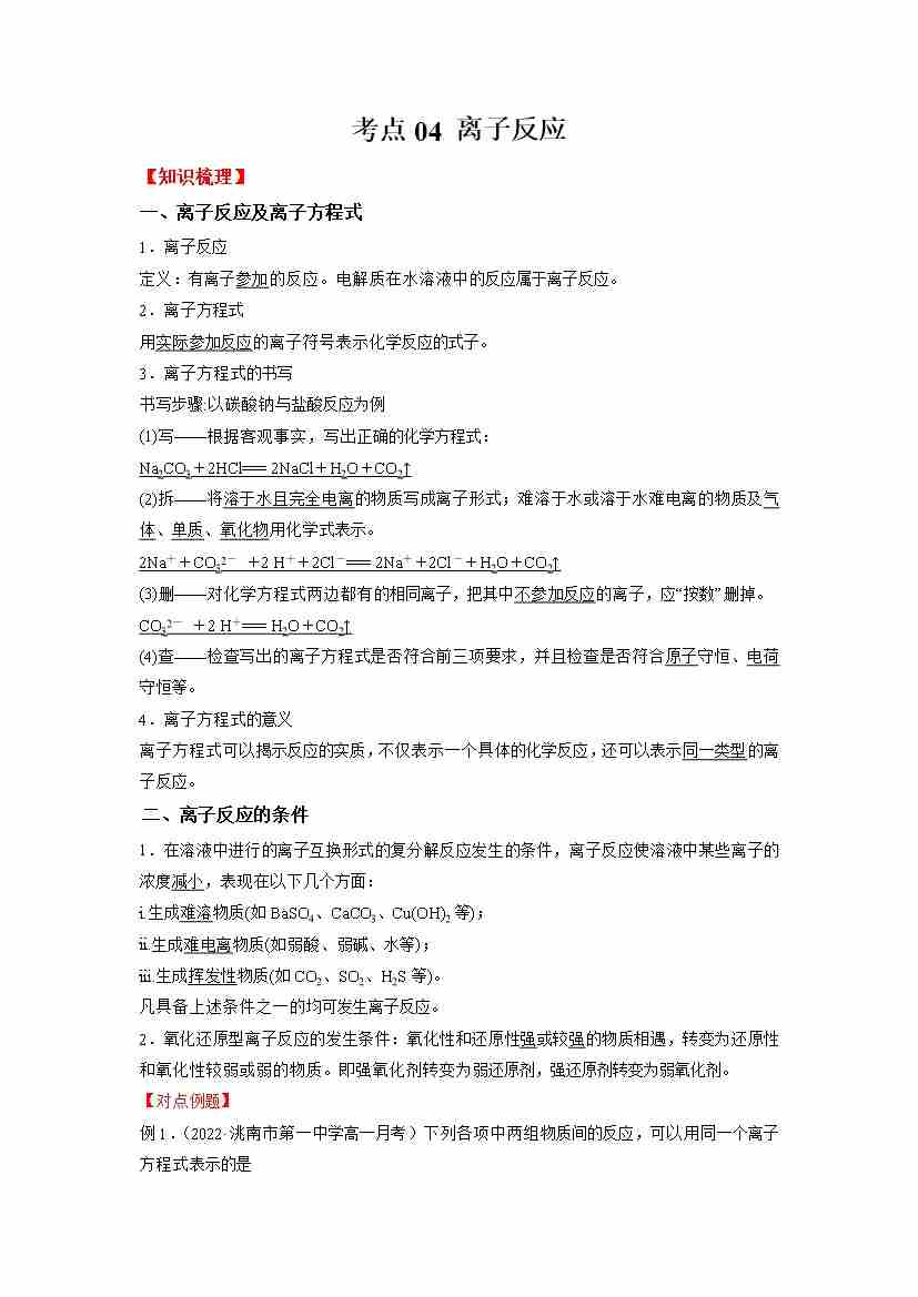 考点04 离子反应(学生版)
