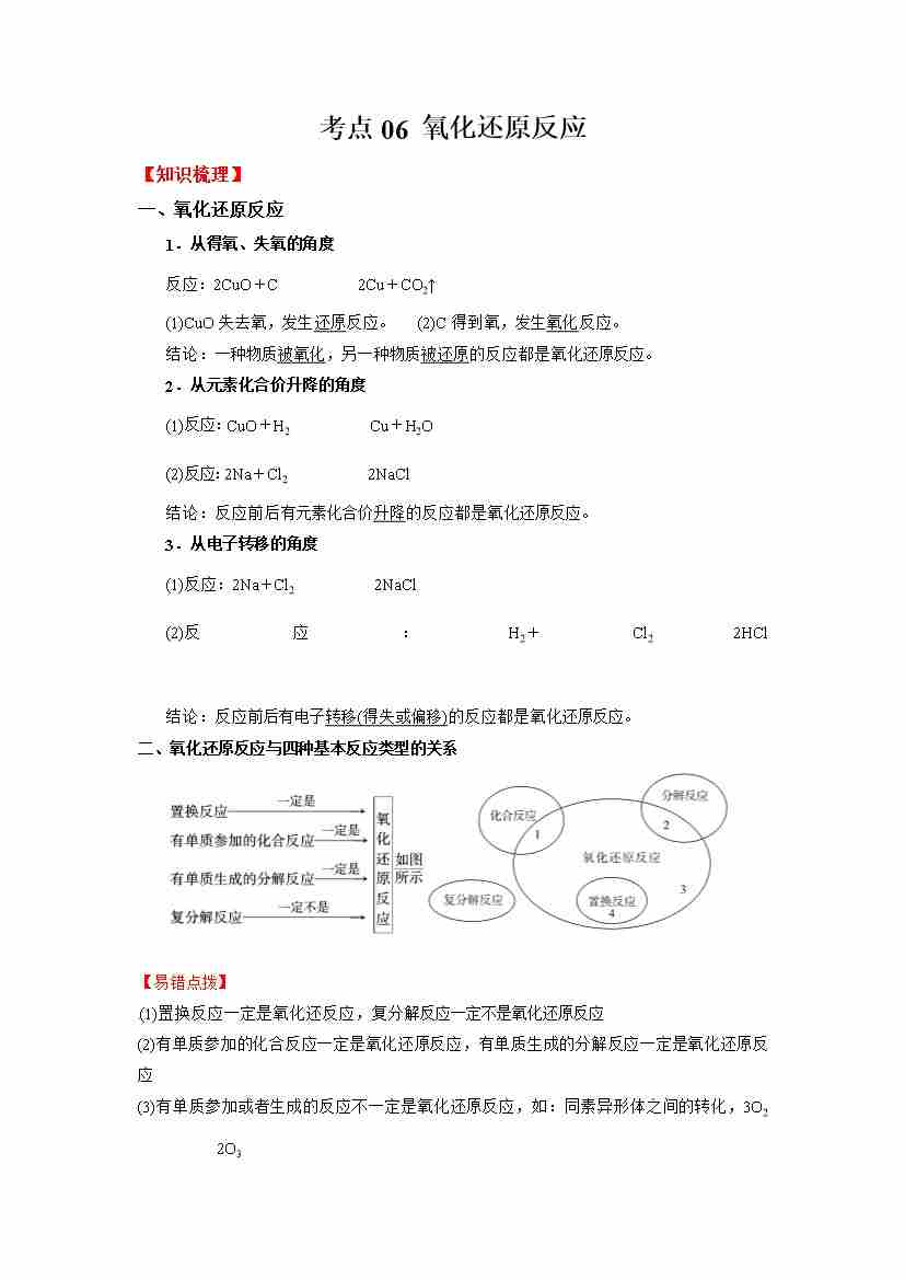 考点06 氧化还原反应(学生版)