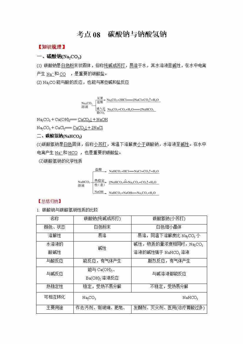 考点08 碳酸钠与钠酸氢钠(学生版)