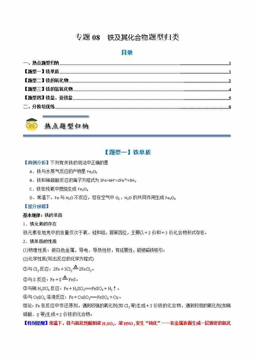专题08 铁及其化合物-(人教版2019必修第一册)(学生版)