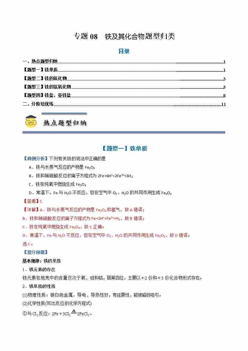 专题08 铁及其化合物-(人教版2019必修第一册)(教师版)