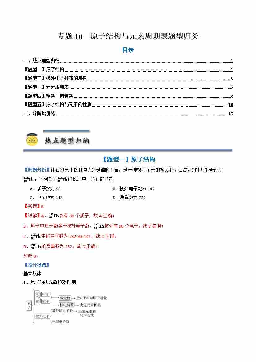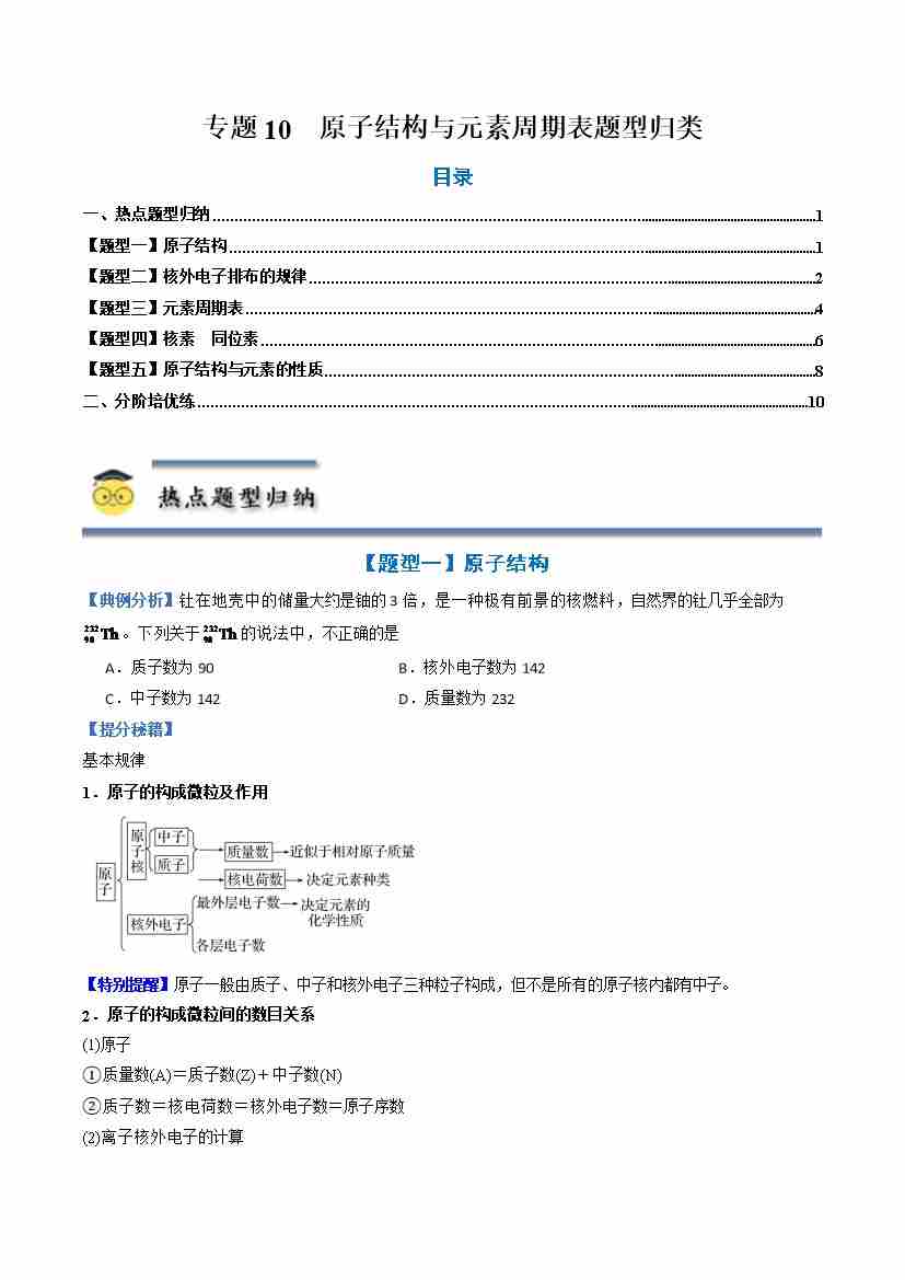 专题10 原子结构与元素周期表-(人教版2019必修第一册)(学生版)