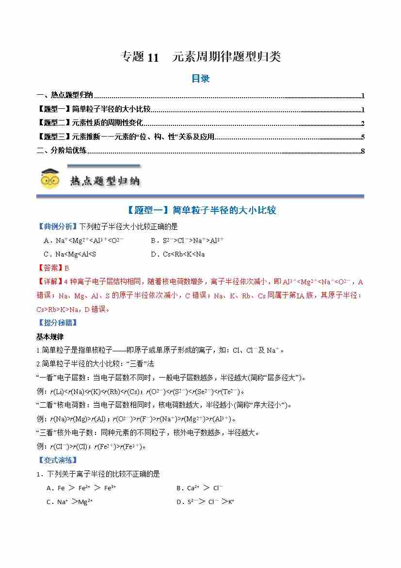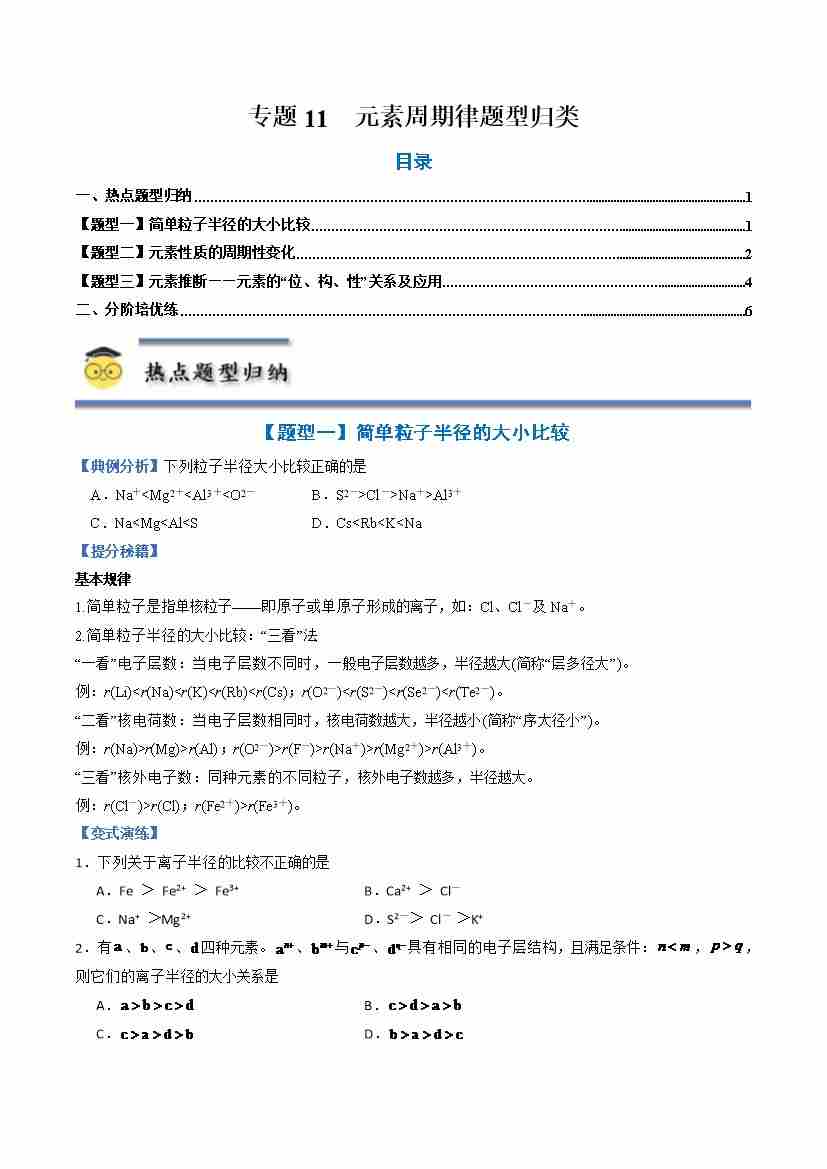 专题11 元素周期律-(人教版2019必修第一册)(学生版)