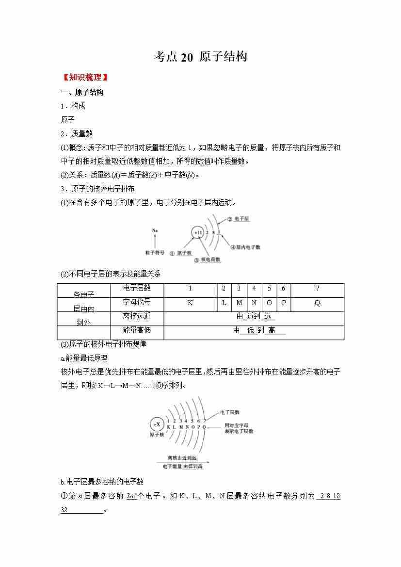考点20 原子结构-(教师版)