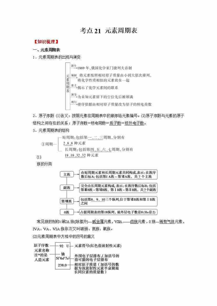 考点21 元素周期表-(教师版)