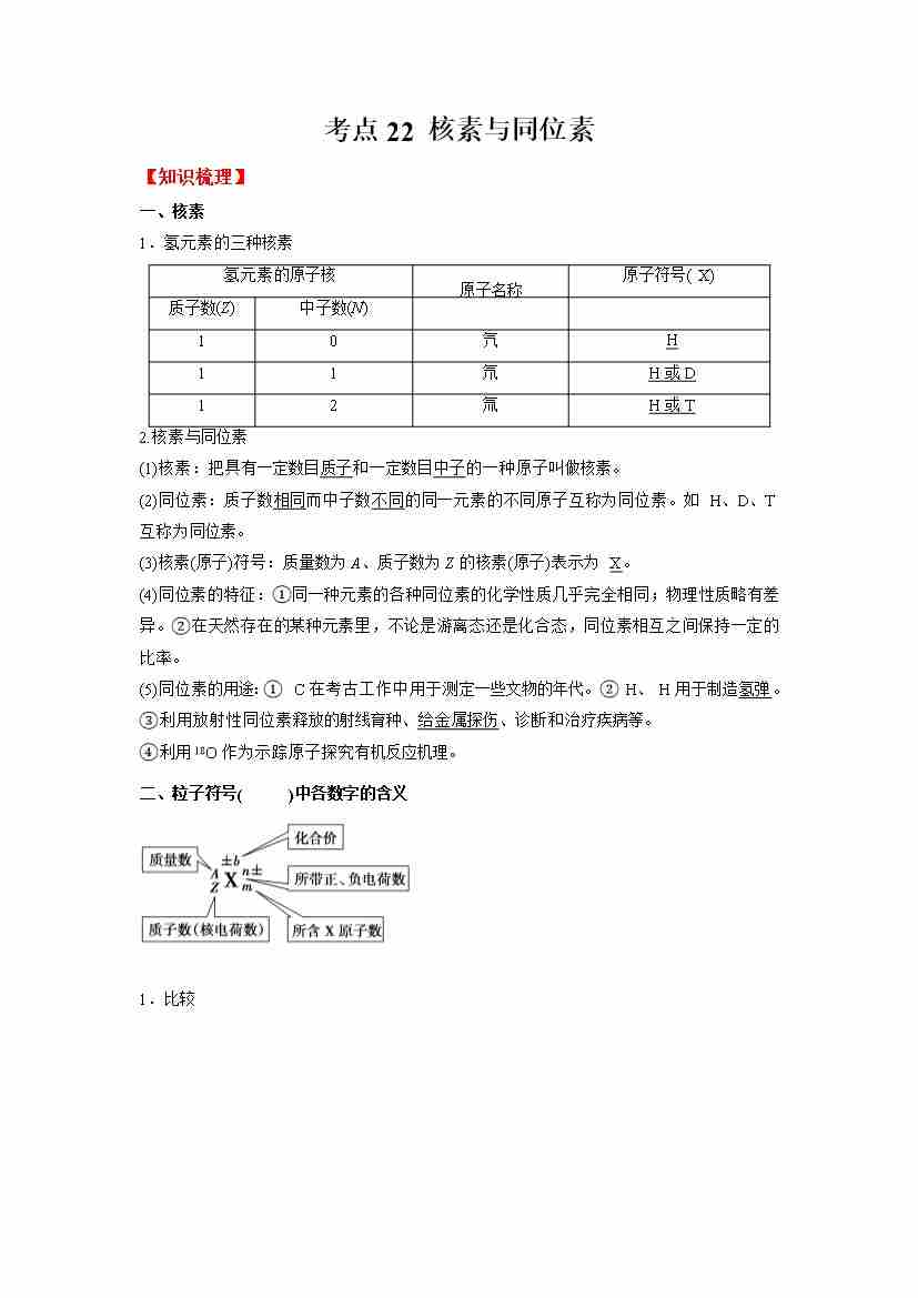 考点22 核素与同位素-(学生版)