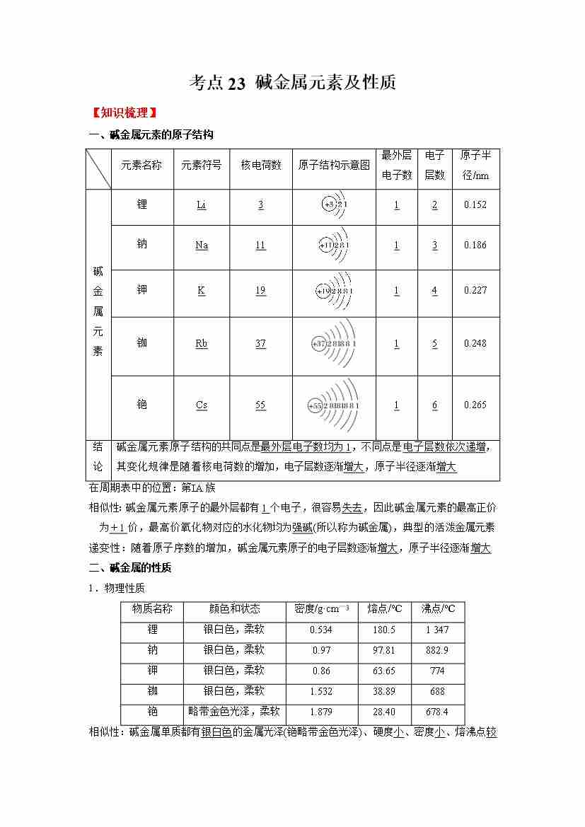 考点23 碱金属元素及性质-(学生版)