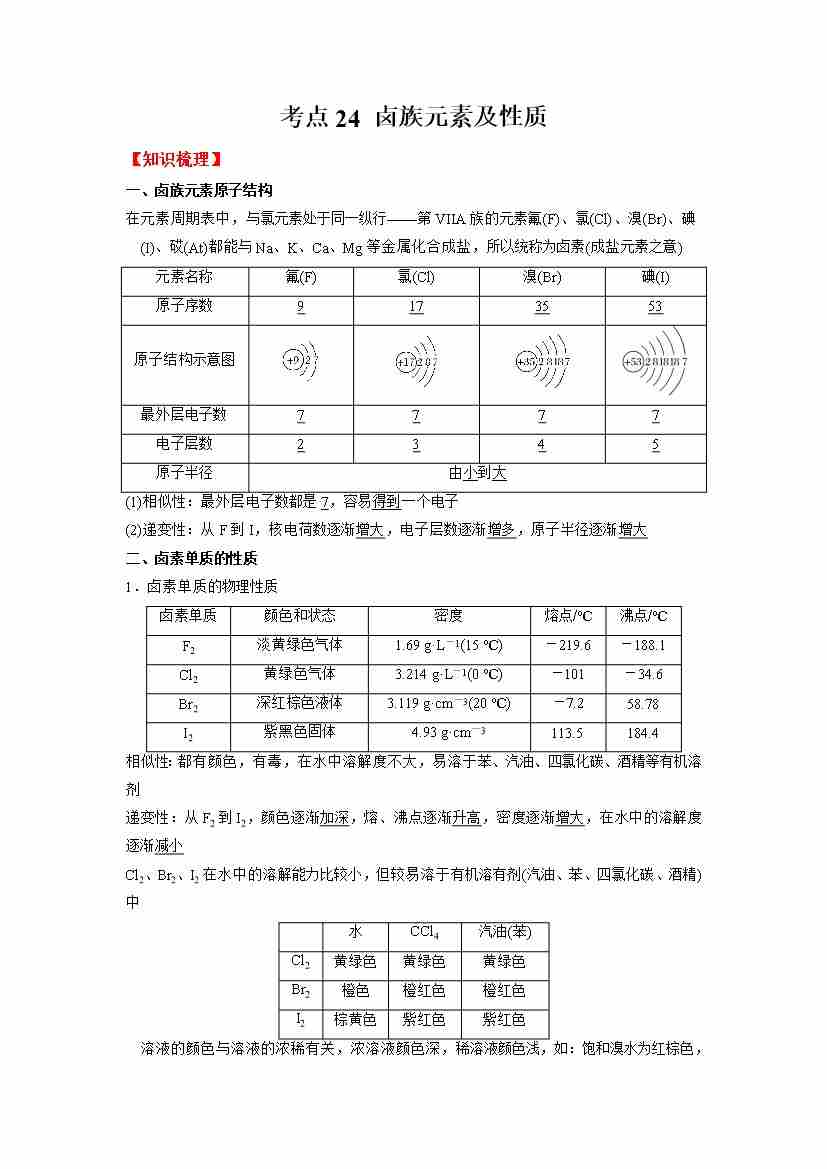 考点24 卤族元素及性质-(学生版)