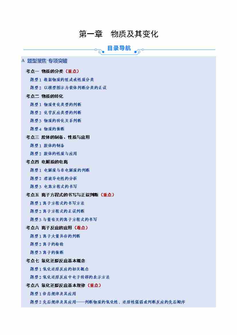 第一章 物质及其变化(专项训练)(学生版)