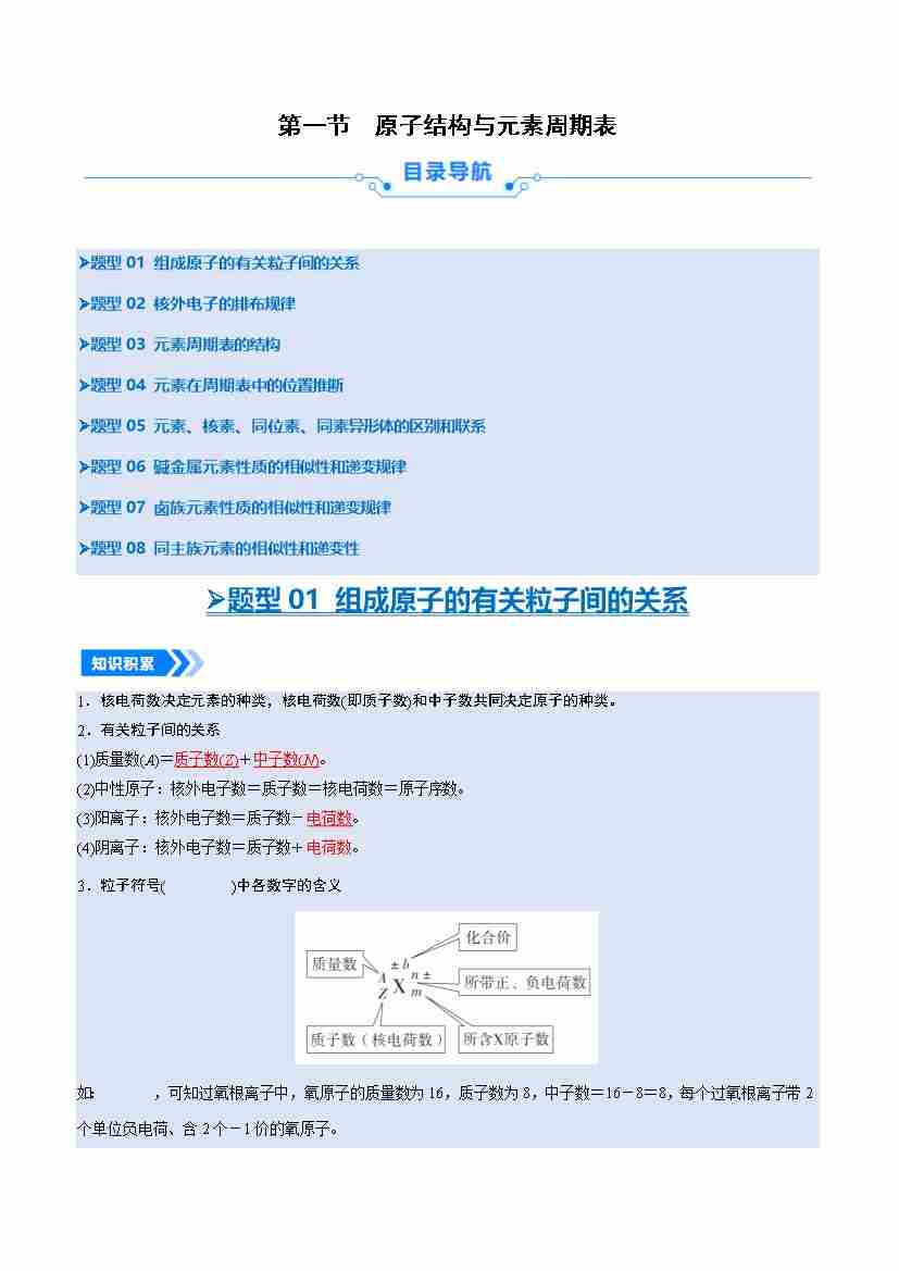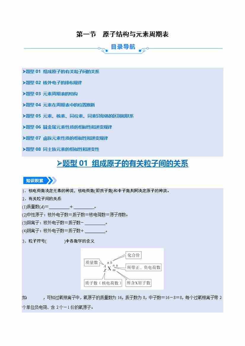 第一节 原子结构与元素周期表 (学生版)