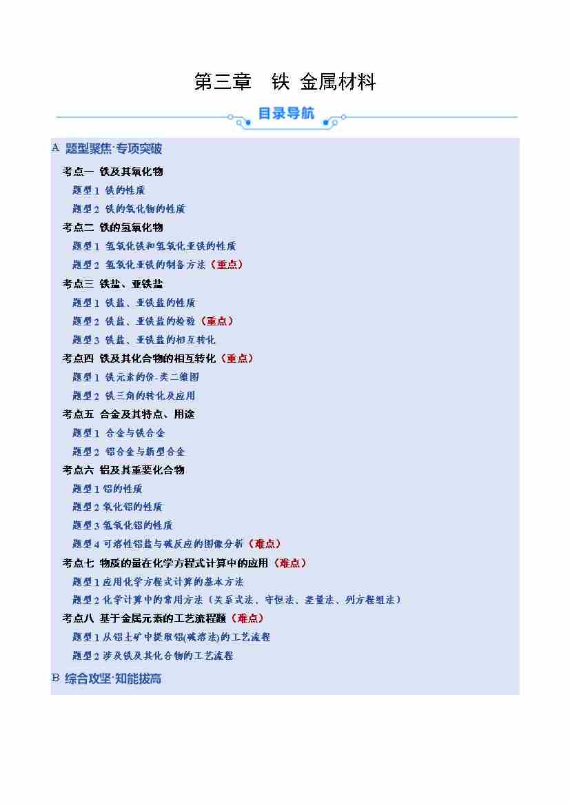 第三章 铁 金属材料(教师版)