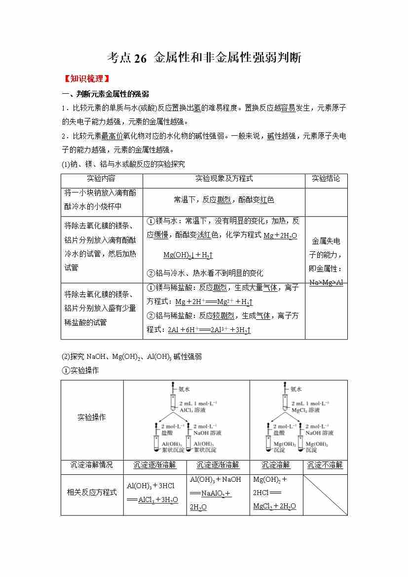 考点26 金属性和非金属性强弱判断-(学生版)