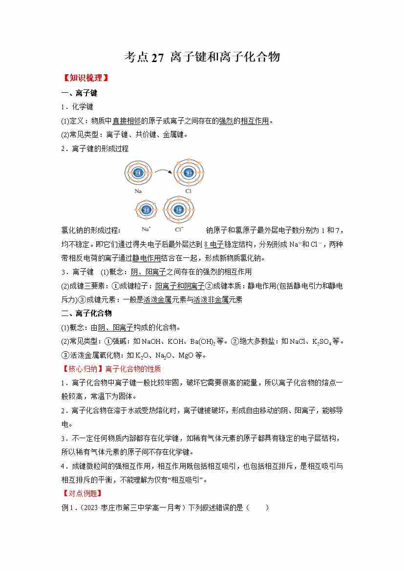 考点27 离子键和离子化合物-(学生版)