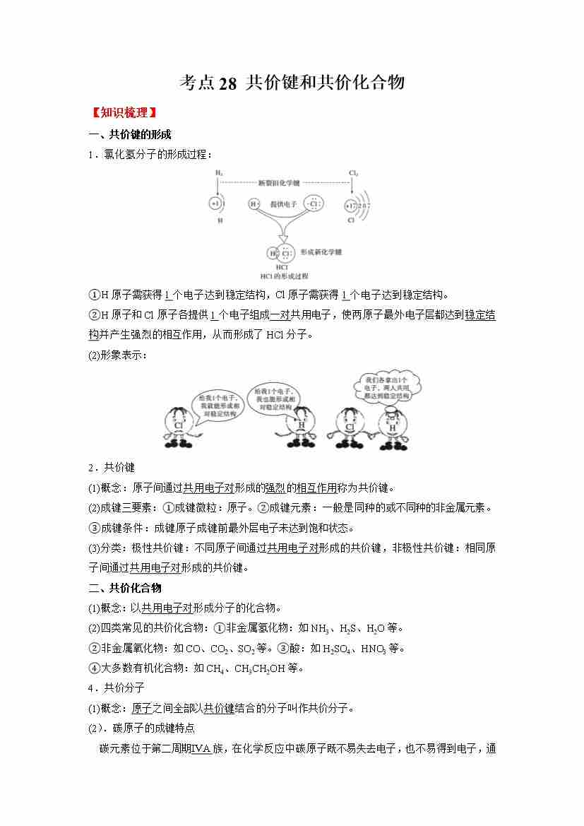 考点28 共价键和共价化合物-(学生版)