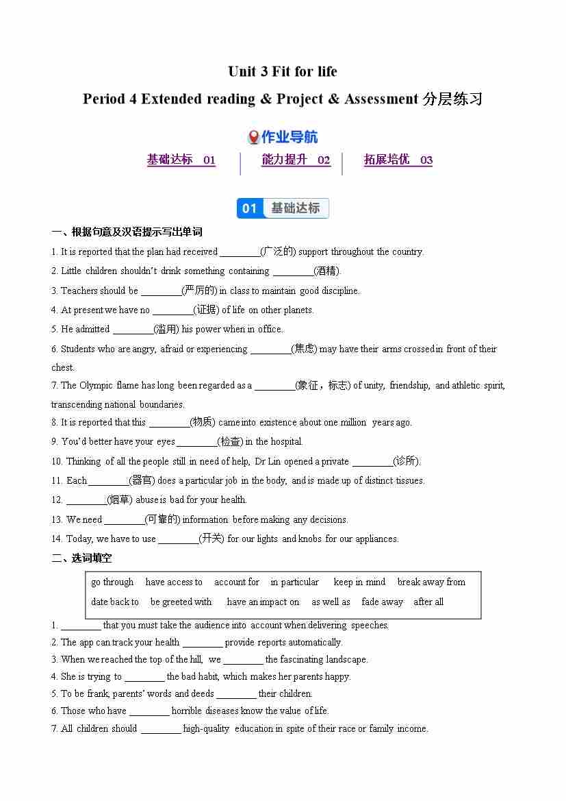 Unit 3 Period 4 Extended reading &Project & Assessment(分层作业) 选择必修第二册(原卷版)