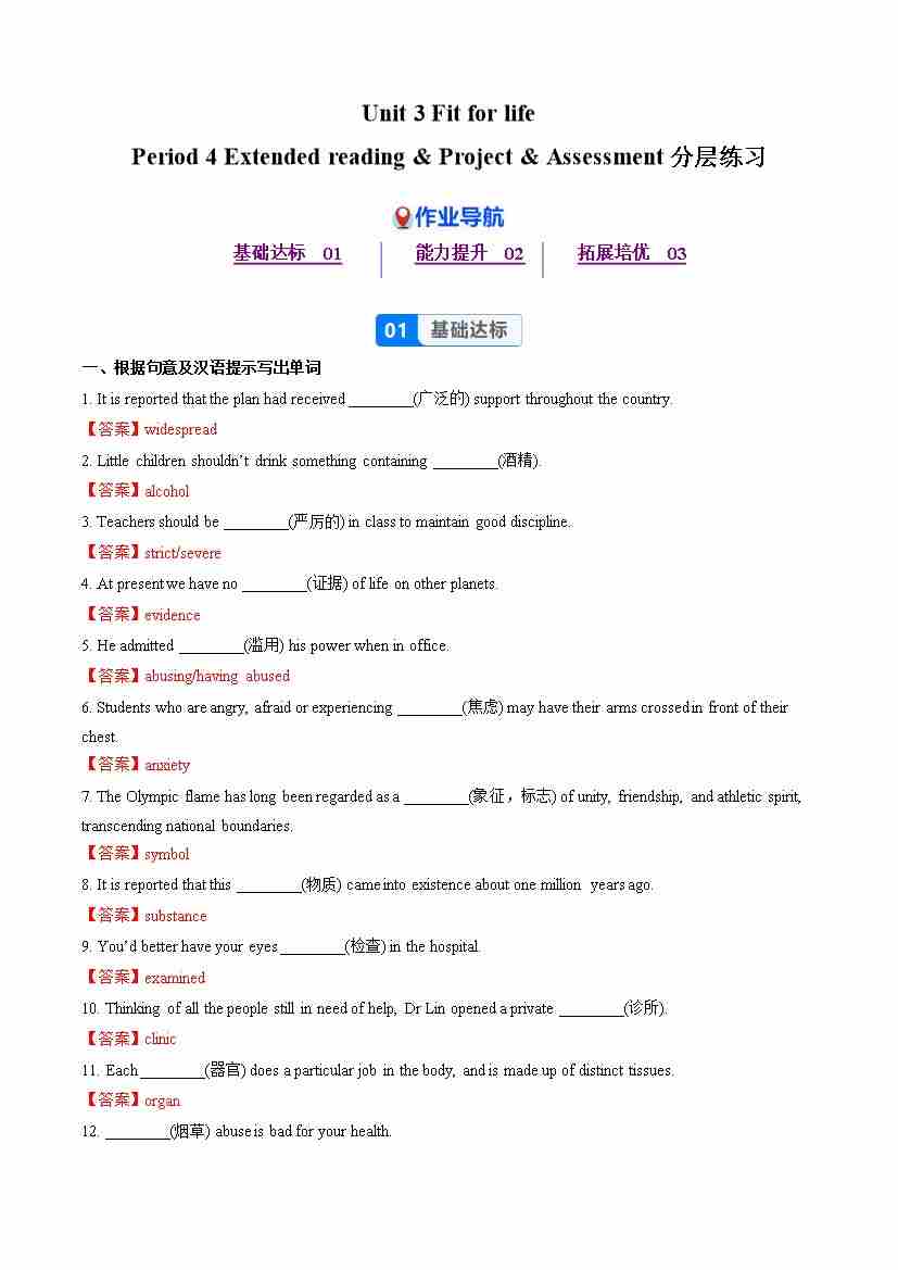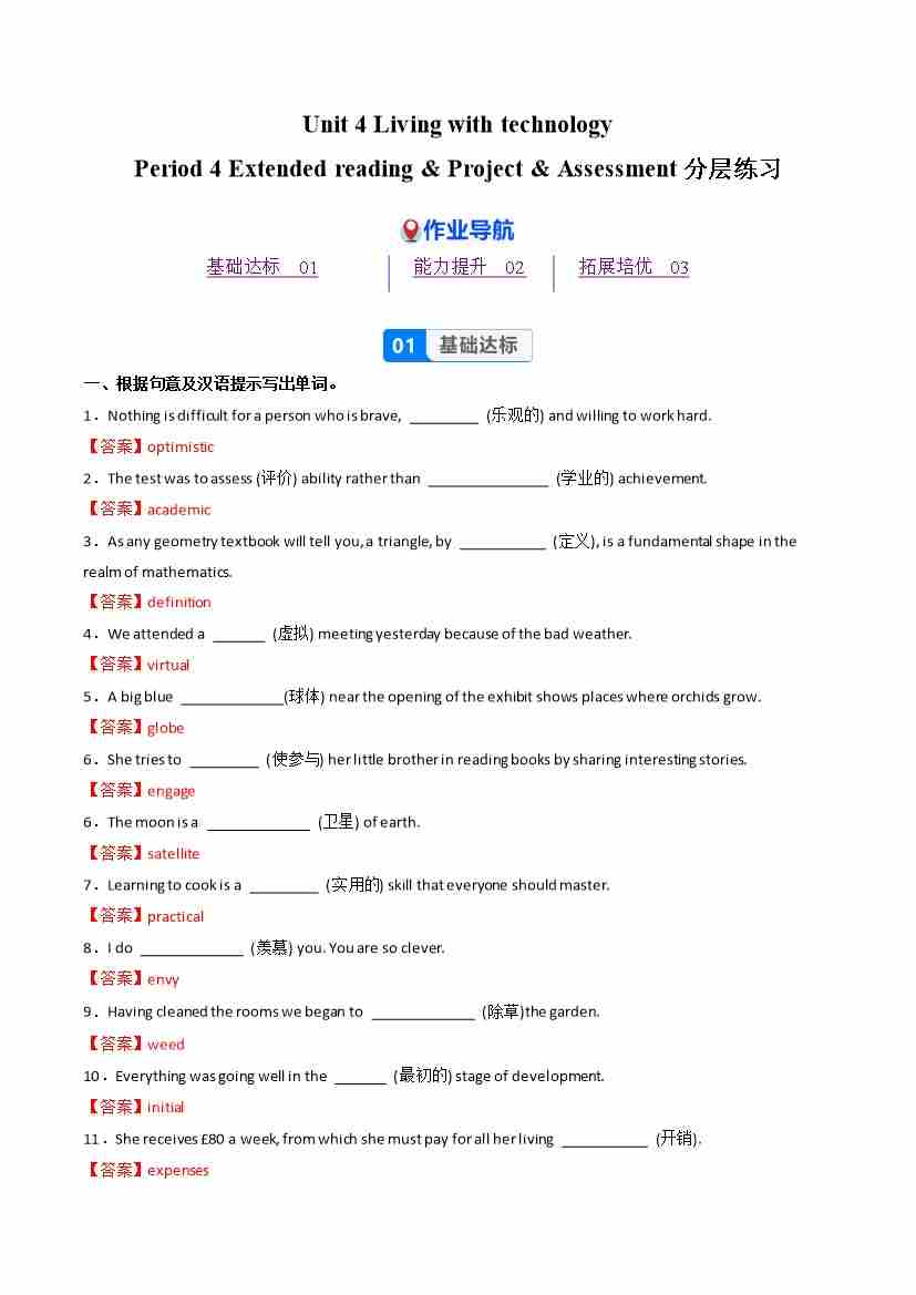 Unit 3 Period 4 Extended reading &Project & Assessment(分层作业) 选择必修第二册(解析版)