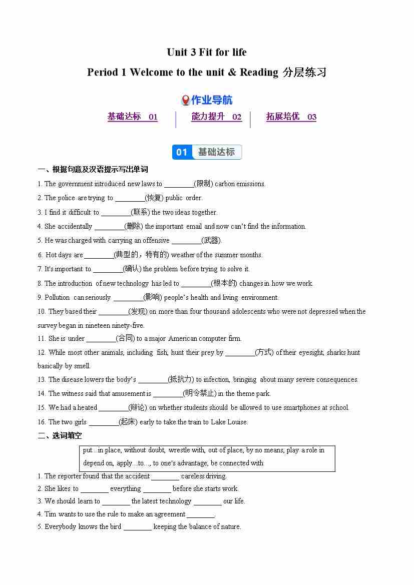 Unit 3 Period 1 Welcome to the unit & Reading(分层作业) 选择必修第二册(原卷版)