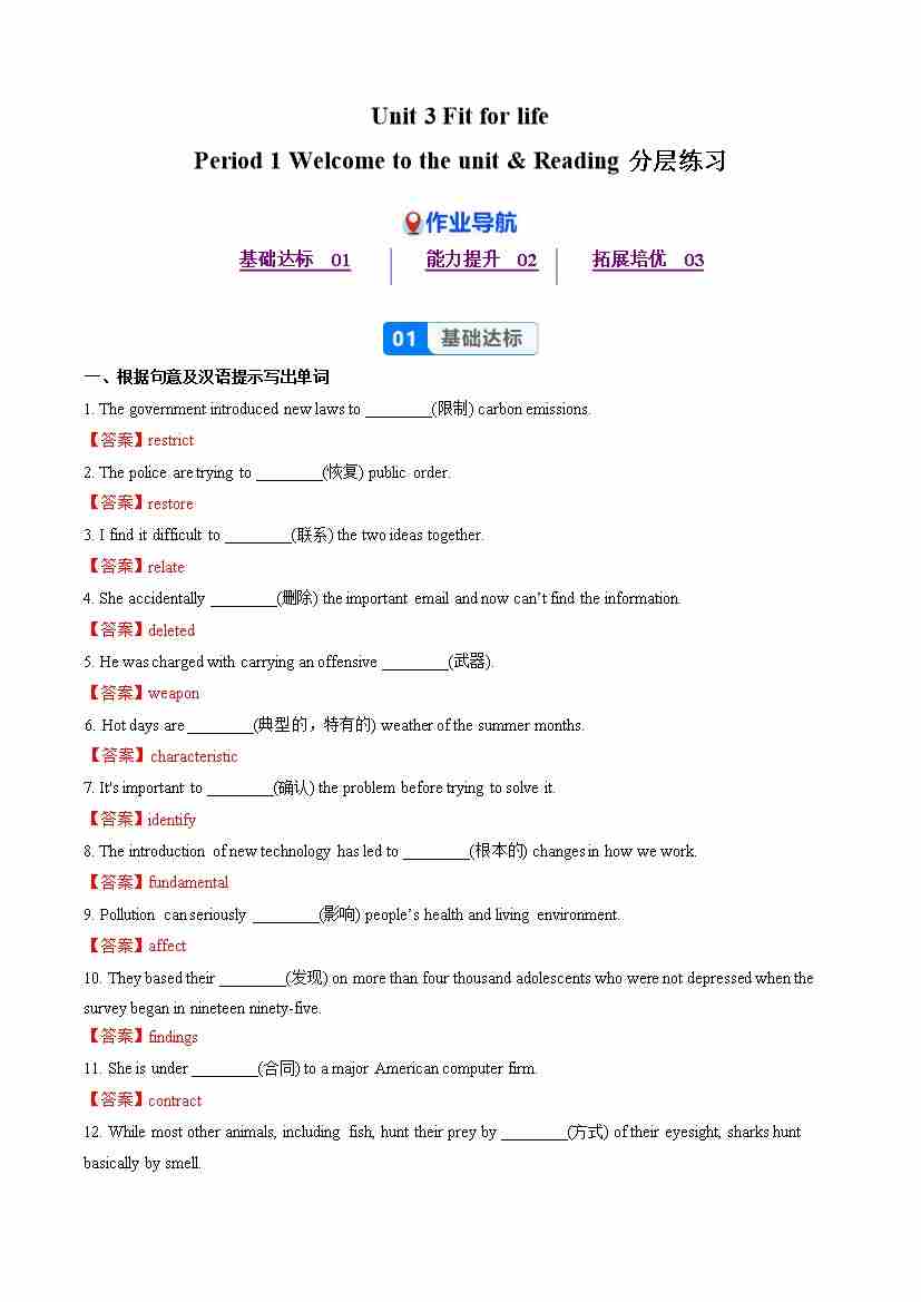Unit 3 Period 1 Welcome to the unit & Reading(分层作业) 选择必修第二册(解析版)