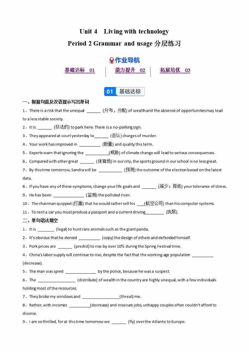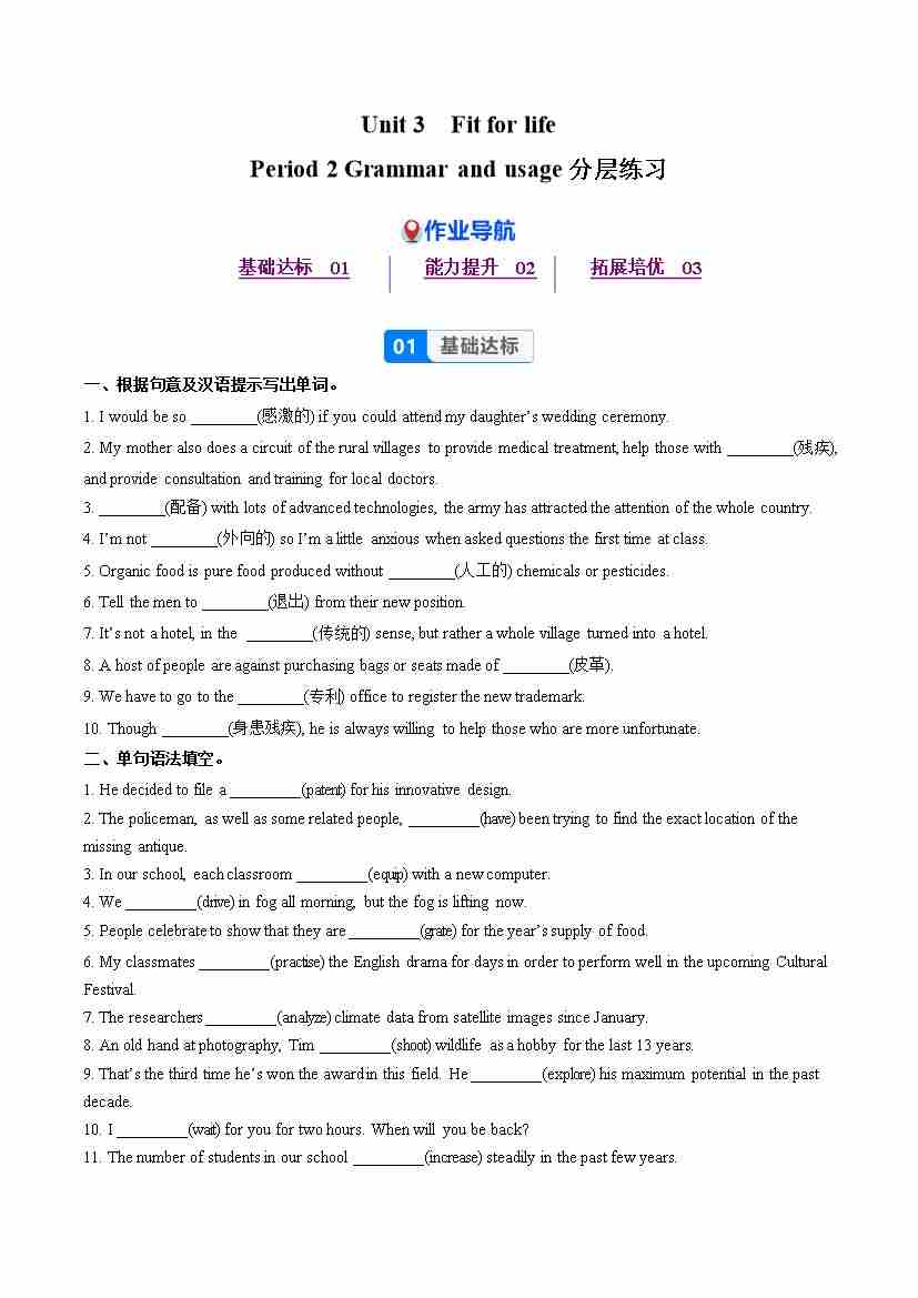 Unit 3 Period 2 Grammar and usage (分层作业) 选择必修第二册(原卷版)