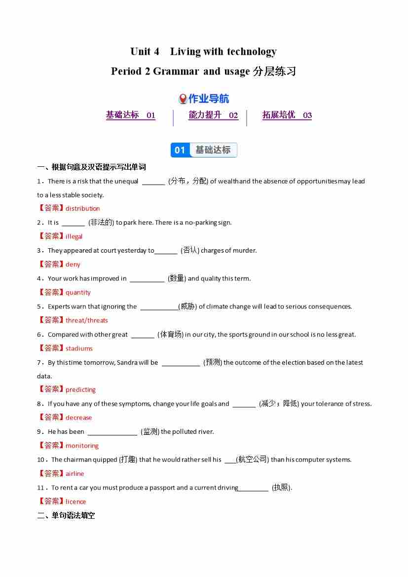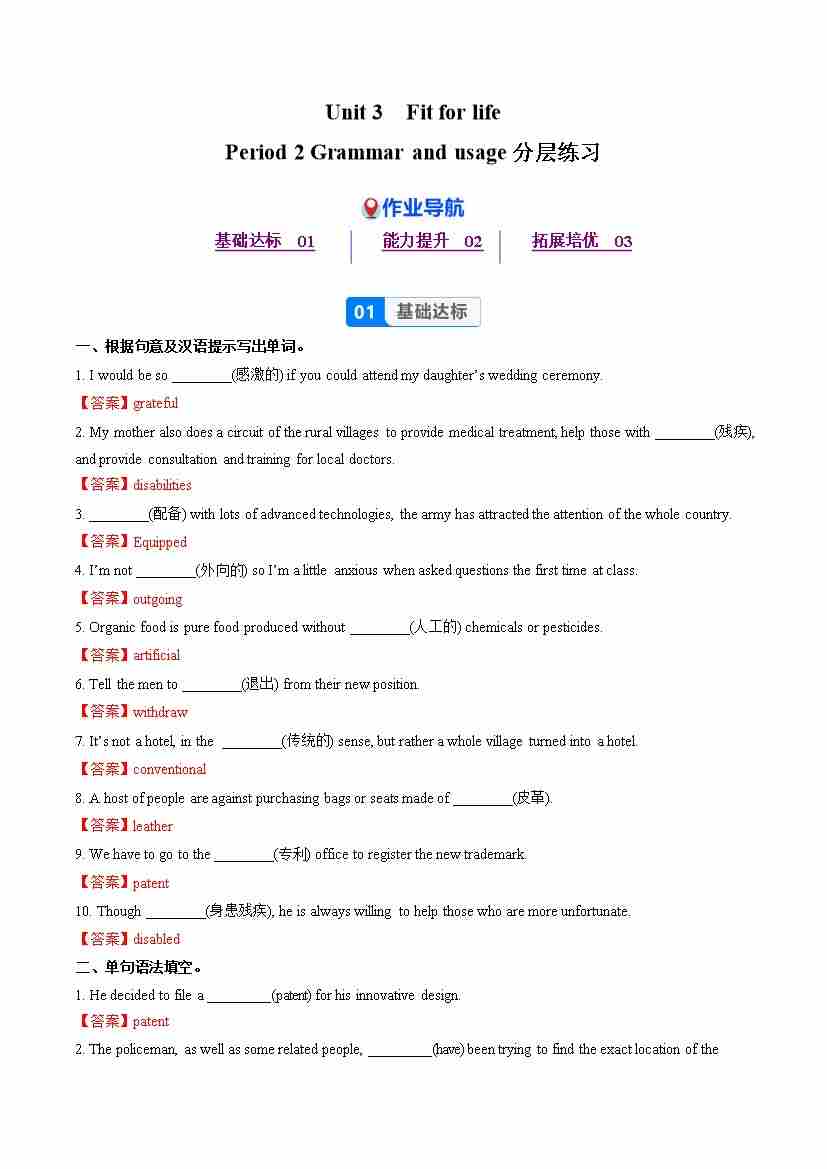 Unit 3 Period 2 Grammar and usage (分层作业) 选择必修第二册(解析版)