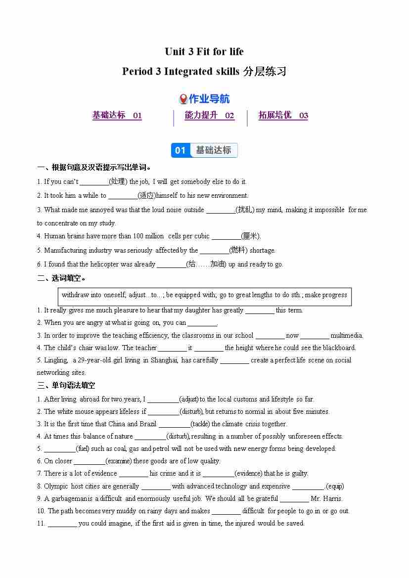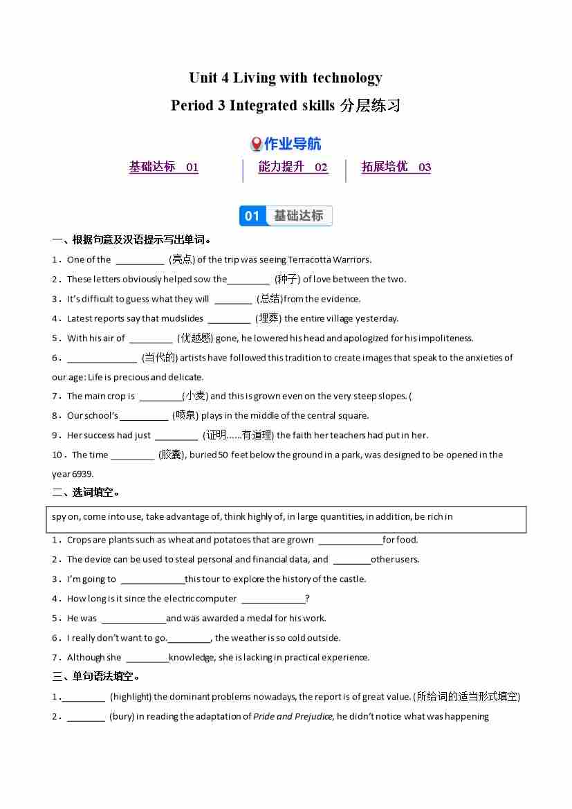 Unit 3 Period 3 Integrated skills(分层作业) 选择必修第二册(原卷版)