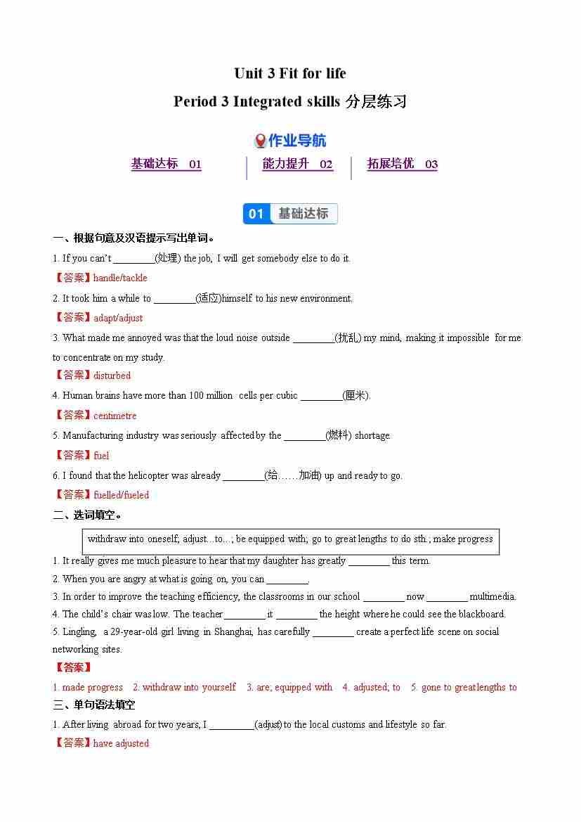 Unit 3 Period 3 Integrated skills(分层作业) 选择必修第二册(解析版)
