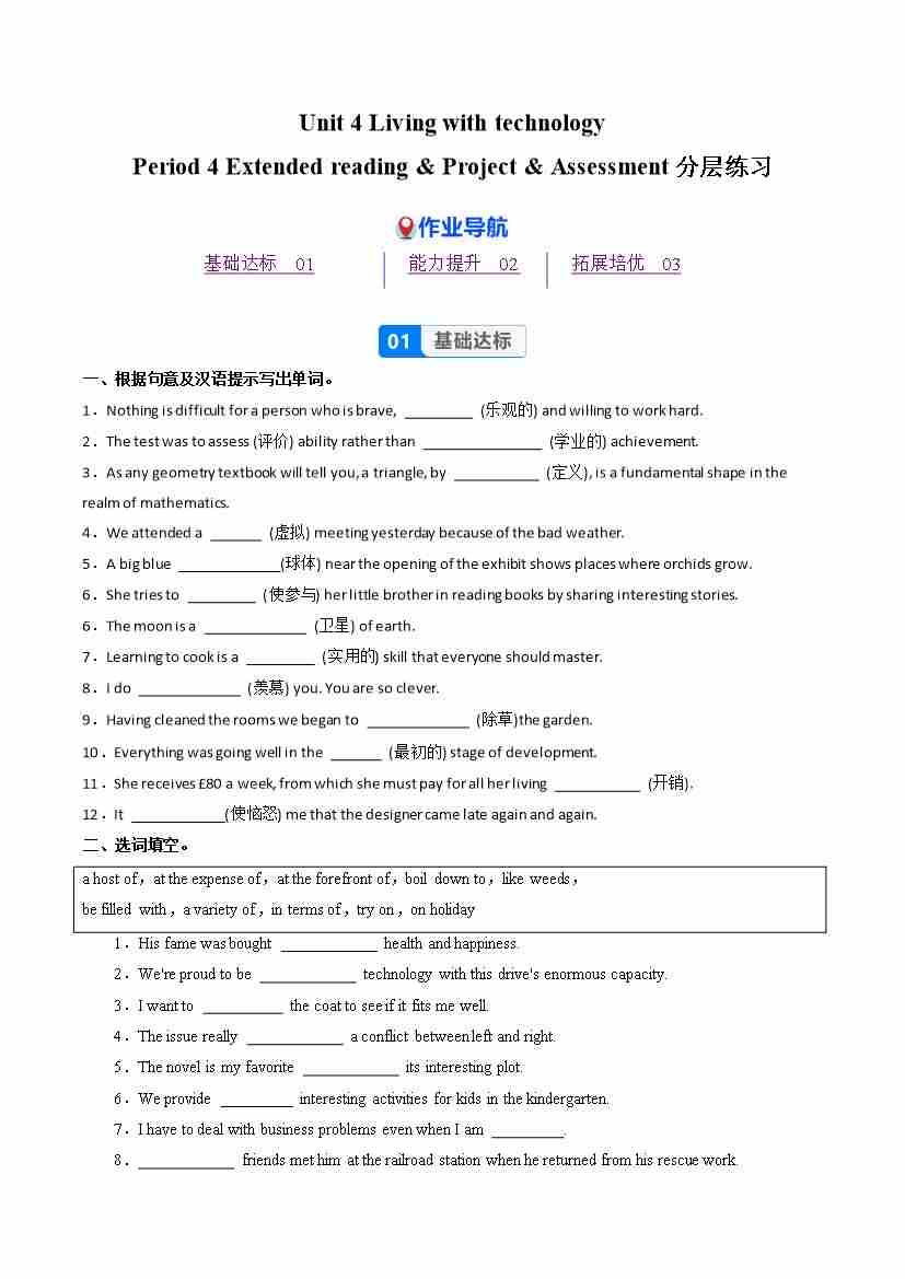 Unit 4 Period 4 Extended reading &Project & Assessment(分层作业) 选择必修第二册(原卷版)