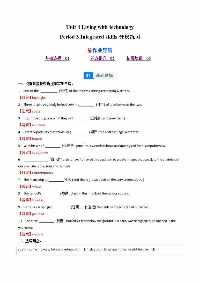 Unit 4 Period 3 Integrated skills(分层作业) 选择必修第二册(解析版)