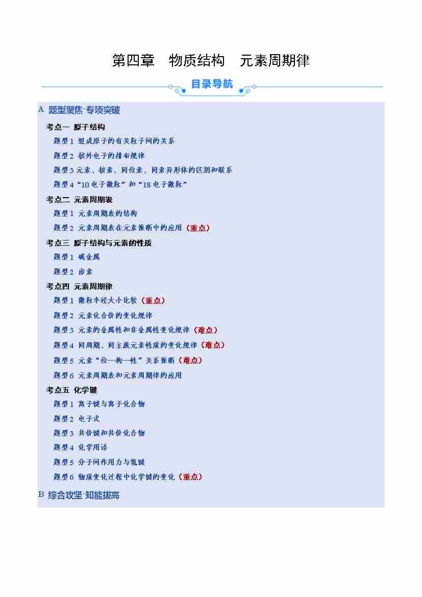 第四章 物质结构 元素周期律(学生版)