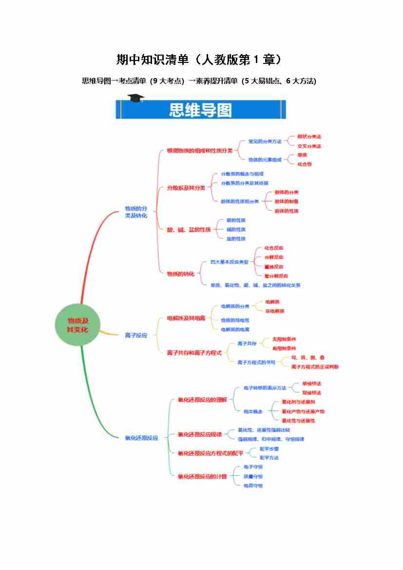第一章 物质及其变化(期中知识清单)(学生版)