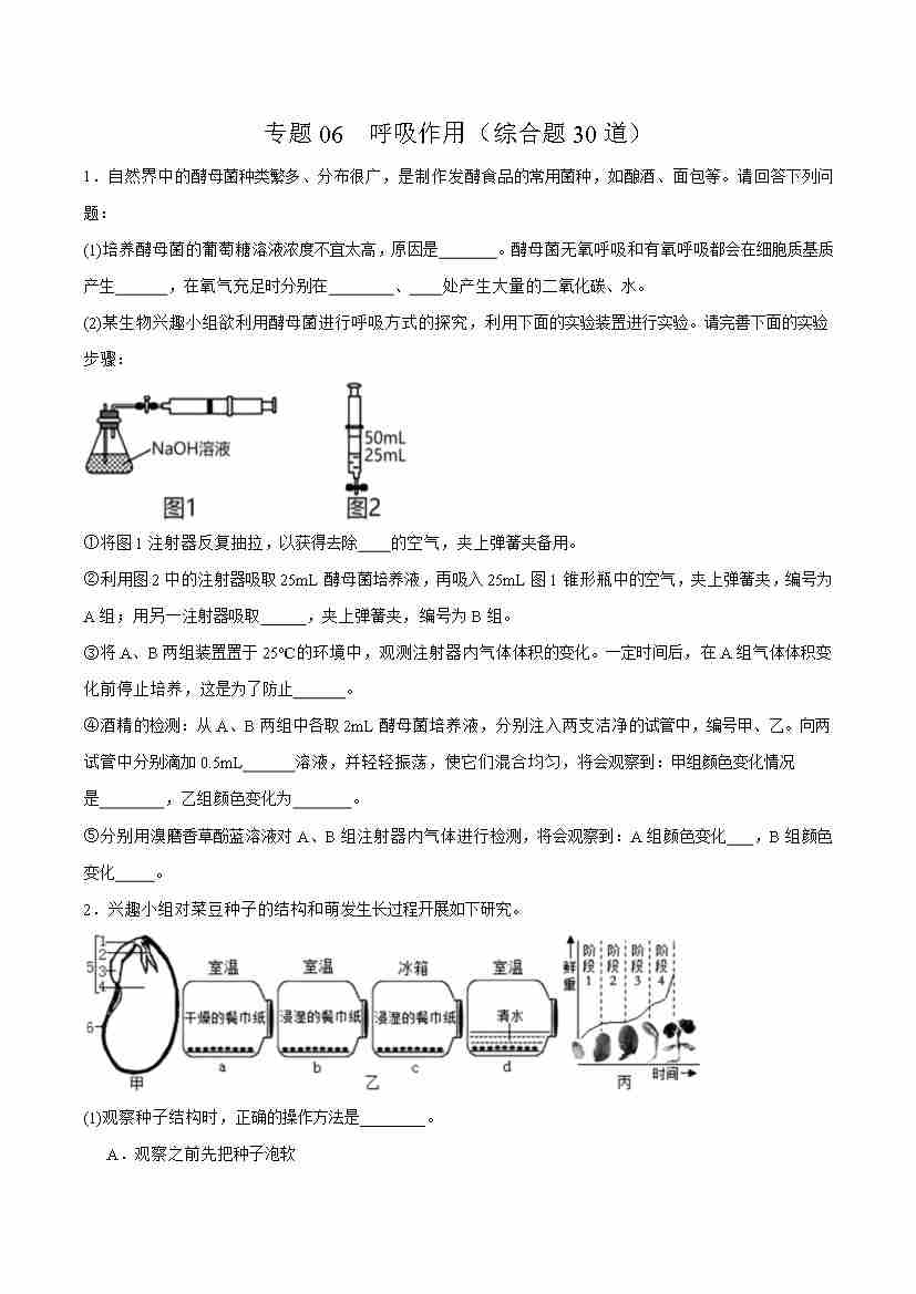 专题06 呼吸作用(综合题30道)(学生版)