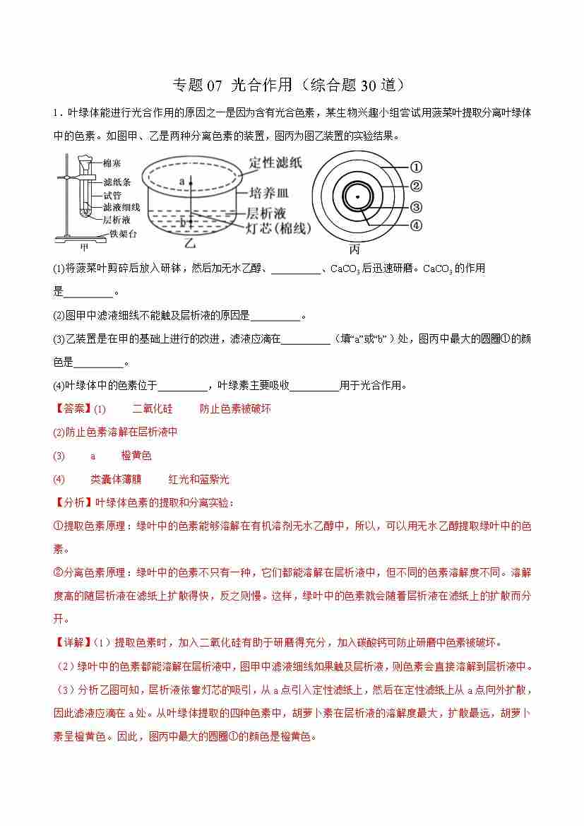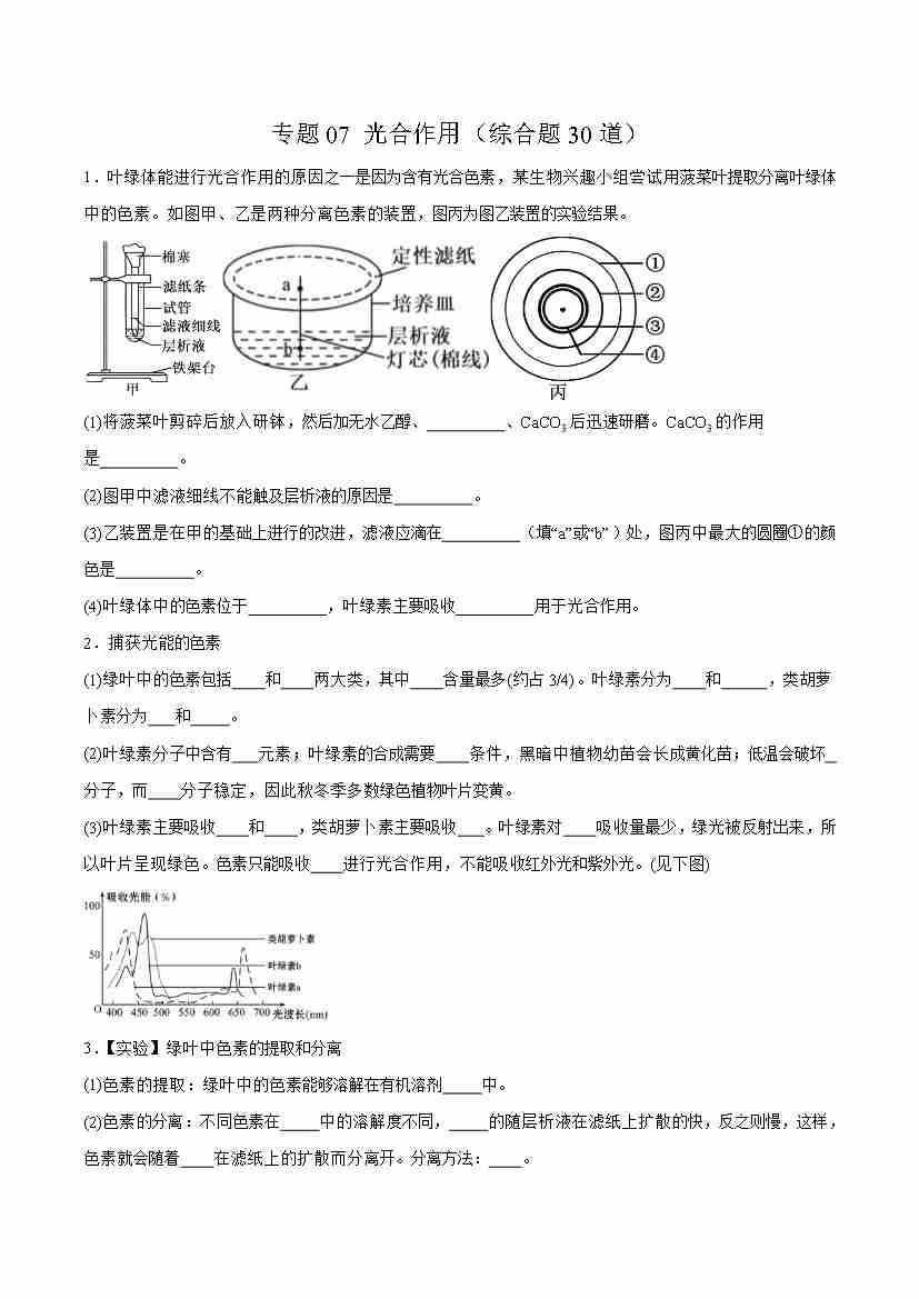 专题07 光合作用(综合题30道)(学生版)