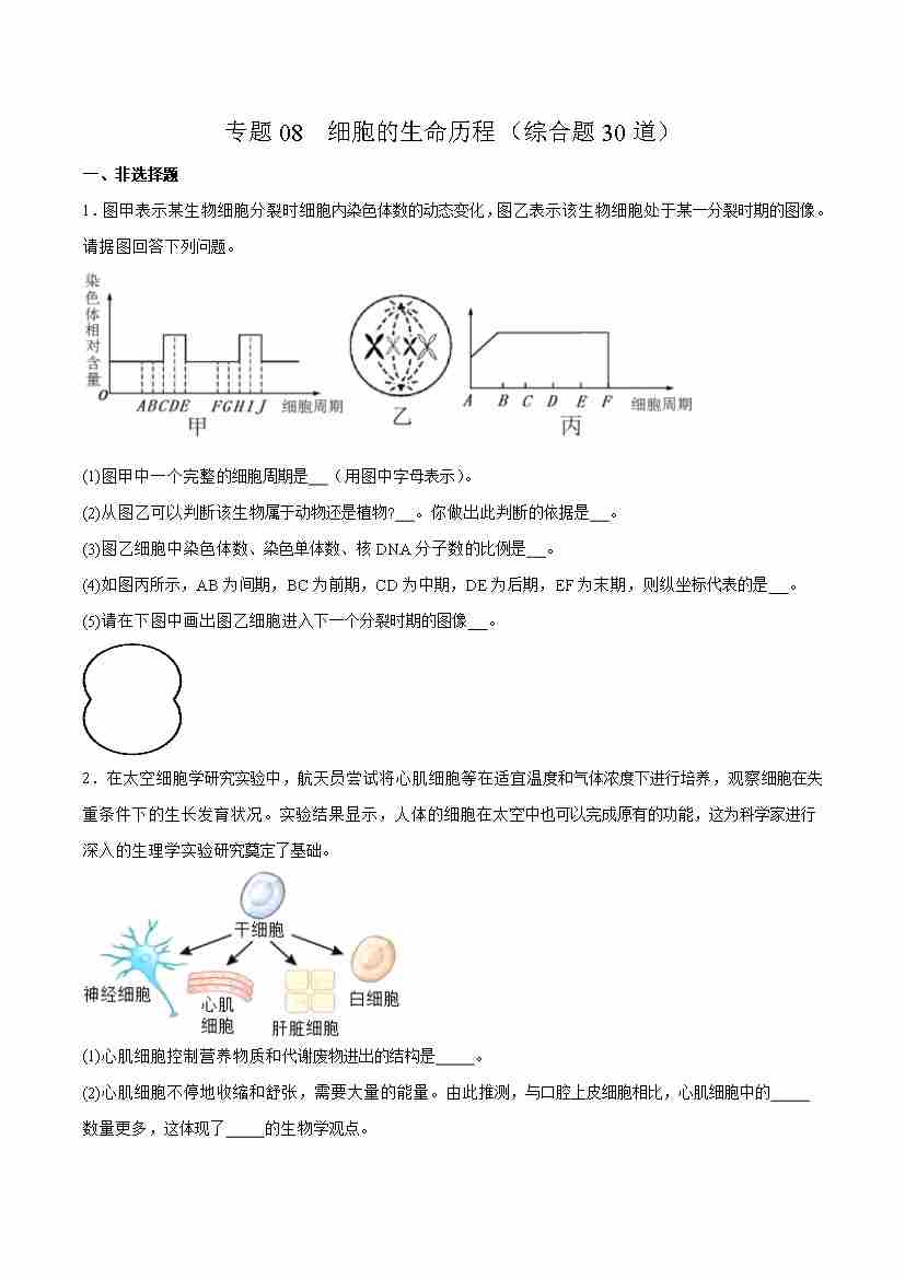 专题08 细胞的生命历程(综合题30道)(学生版)
