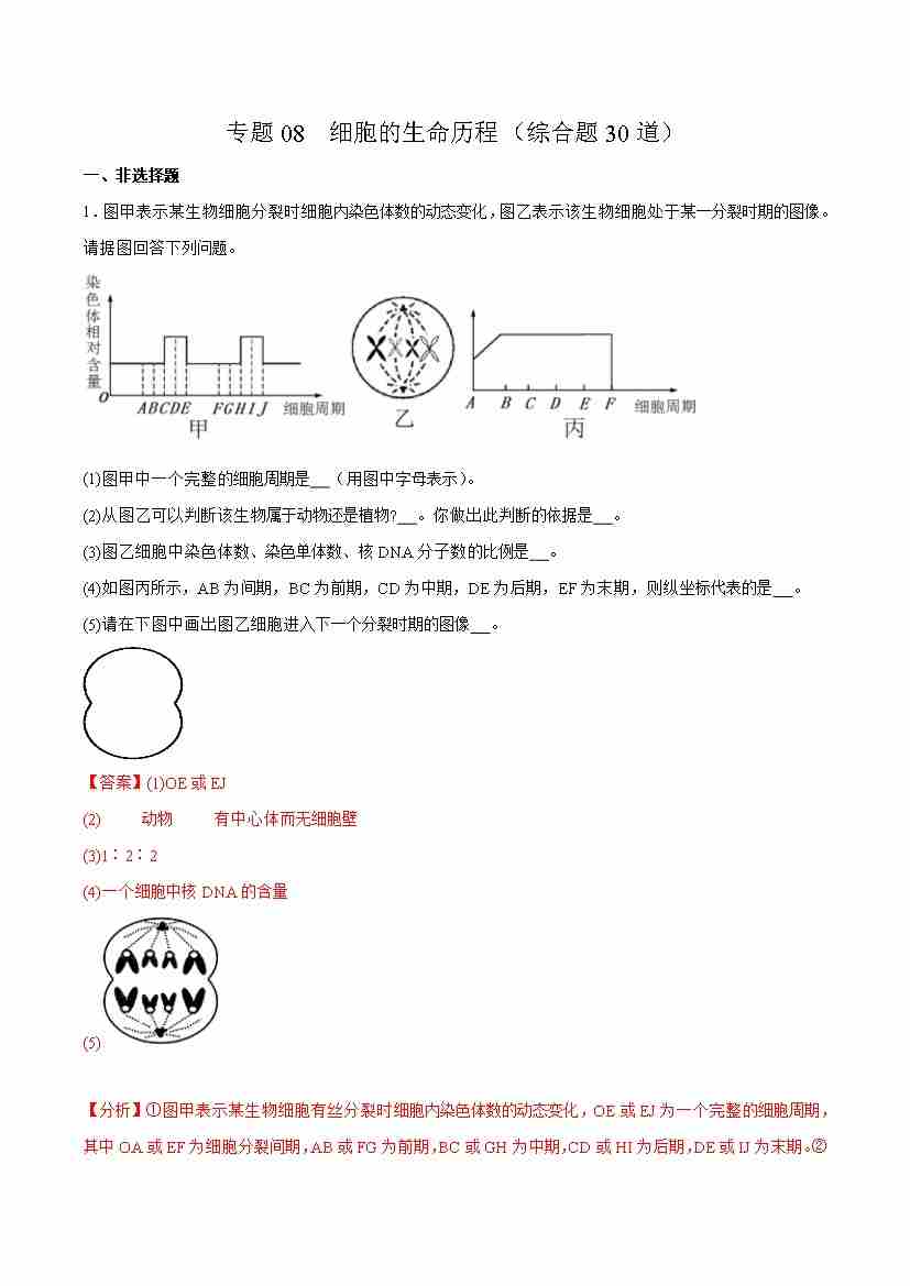 专题08 细胞的生命历程(综合题30道)(教师版)