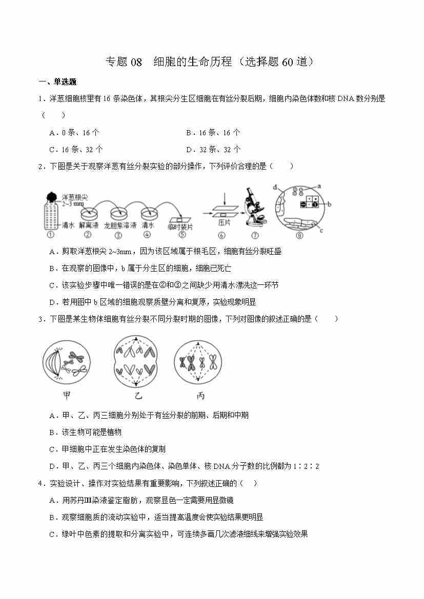 专题08 细胞的生命历程(选择题60道)(学生版)