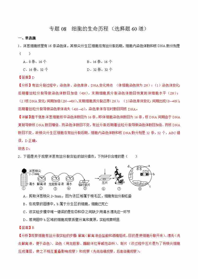 专题08 细胞的生命历程(选择题60道)(教师版)