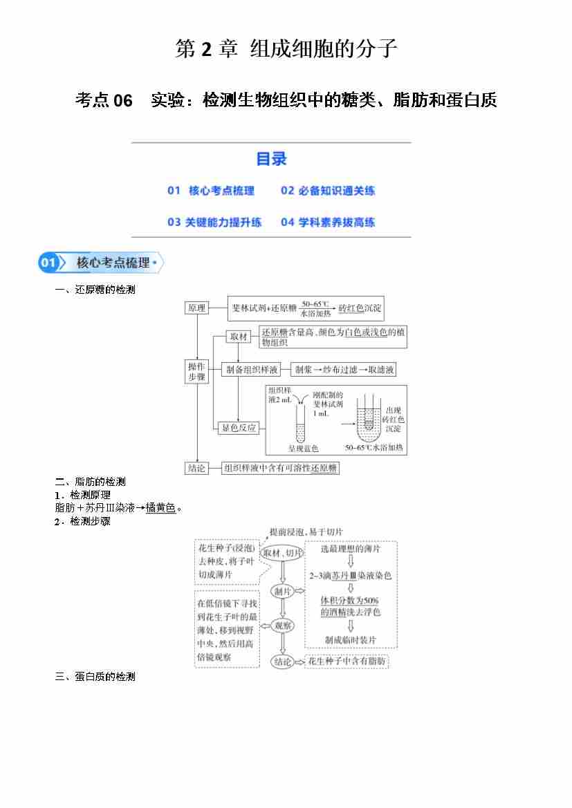 第06讲 实验:检测生物组织中的糖类、脂肪和蛋白质(学生版)