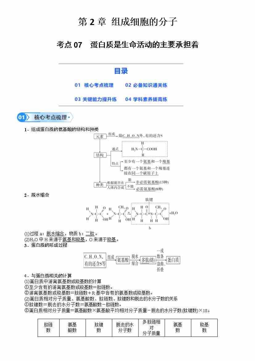 第07讲 蛋白质是生命活动的主要承担者(学生版)