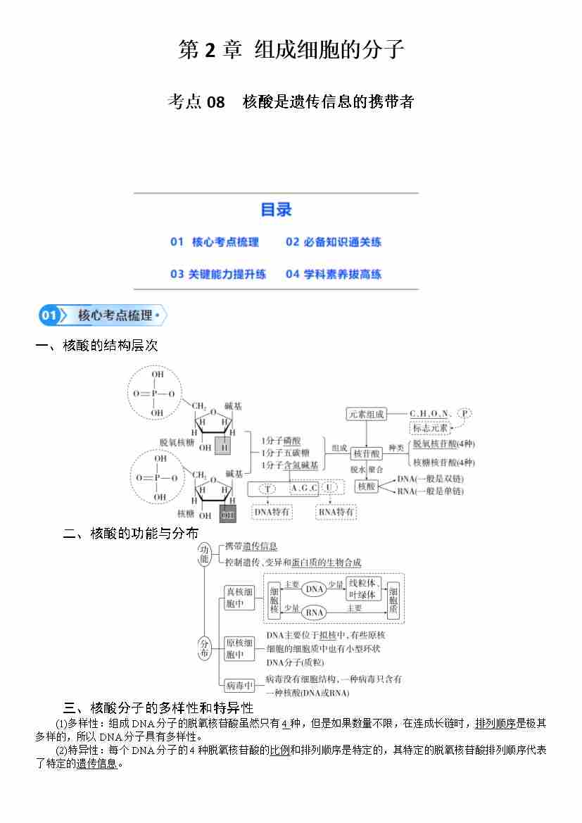 第08讲 核酸是遗传信息的携带者(学生版)