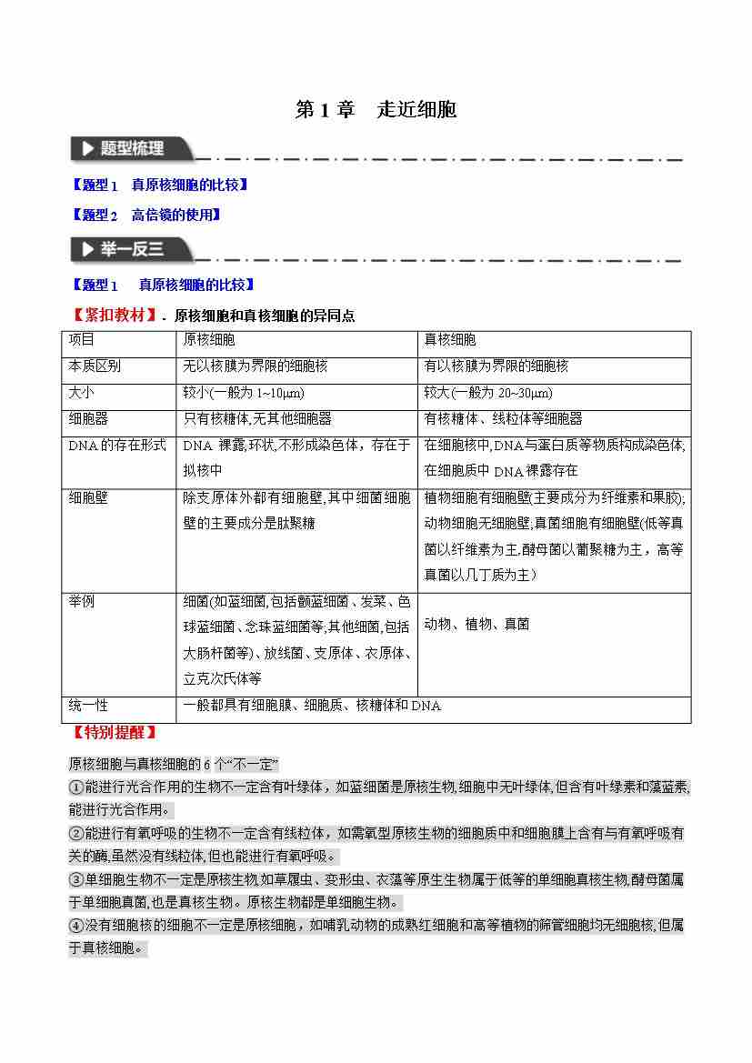 第1章 走近细胞(教师版)