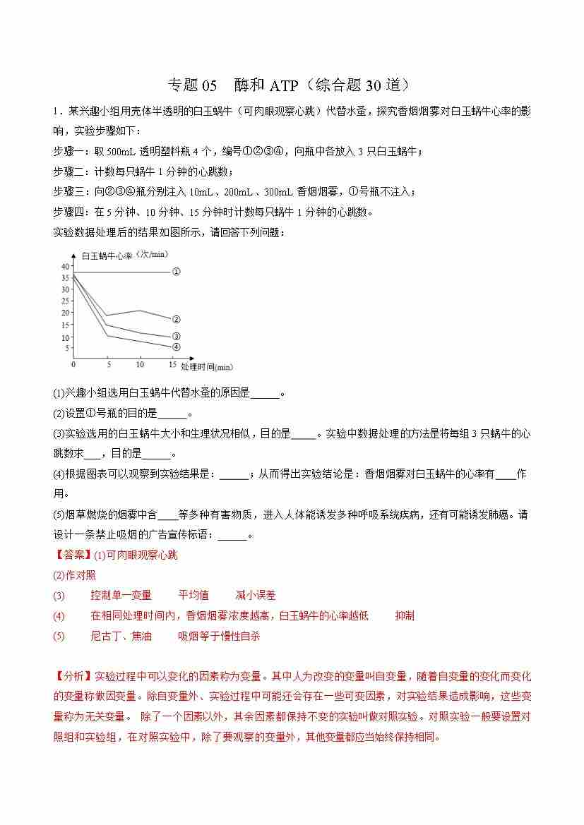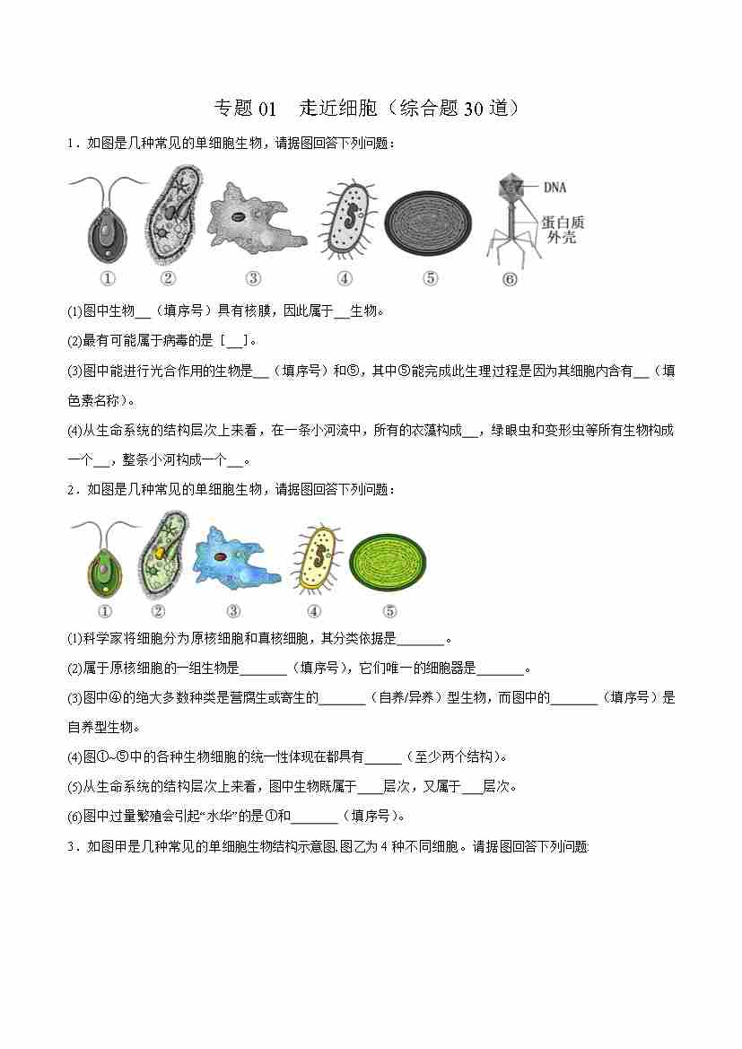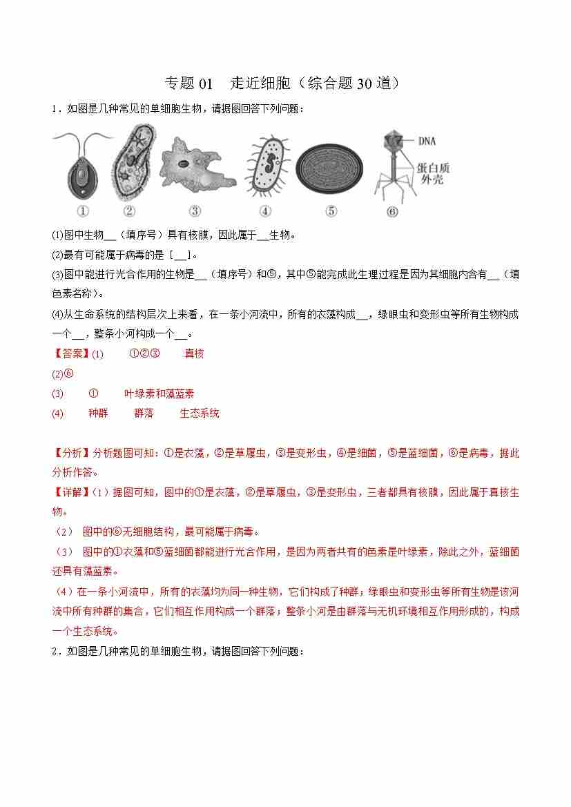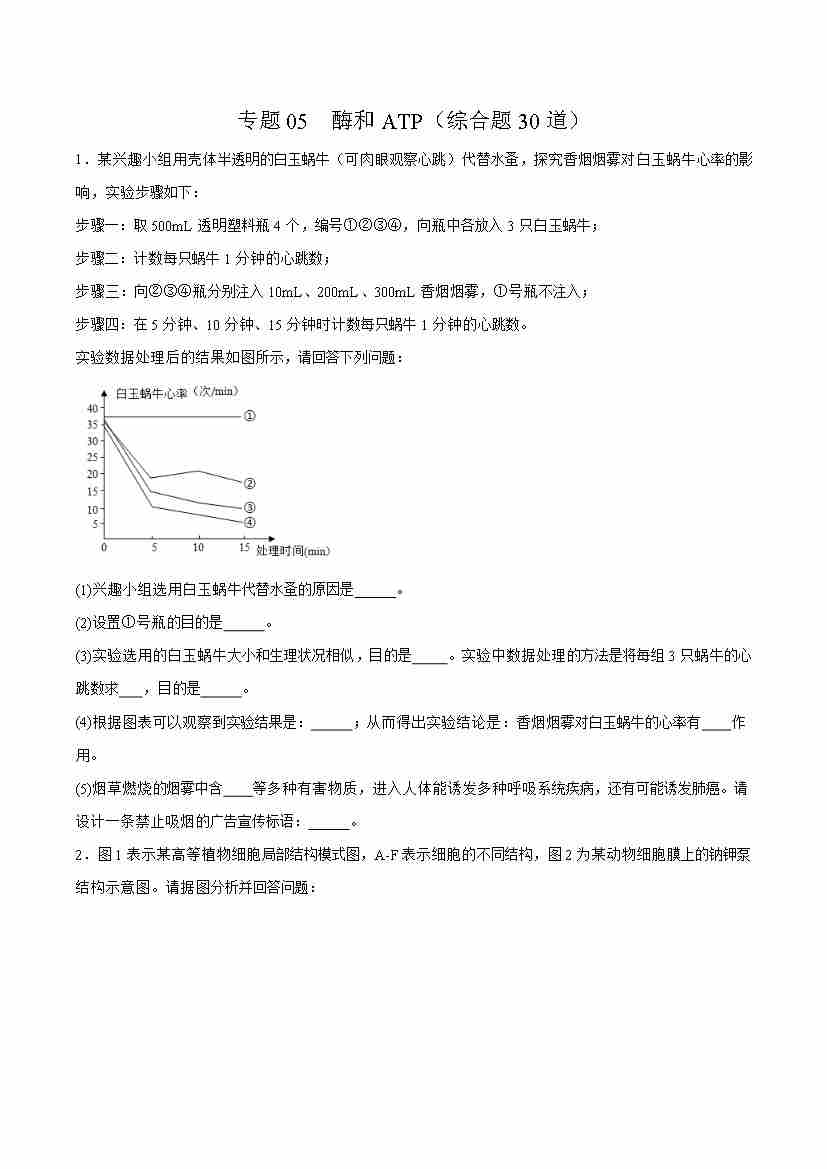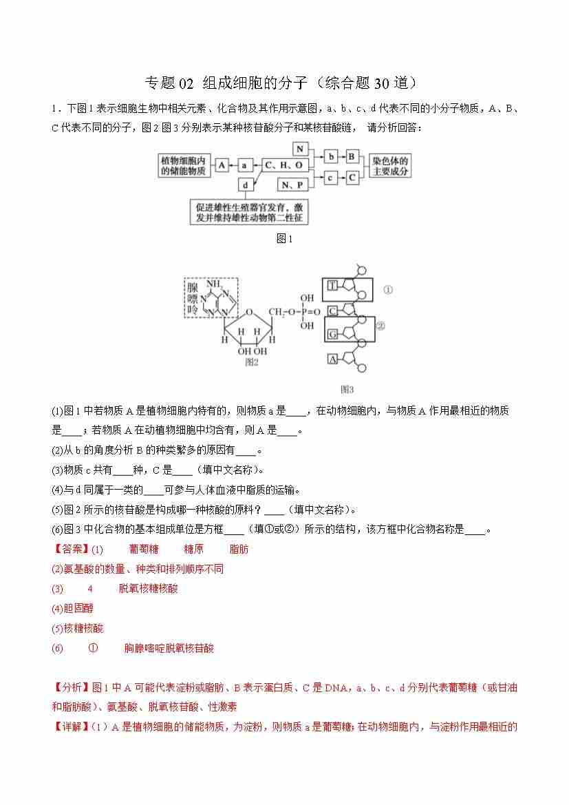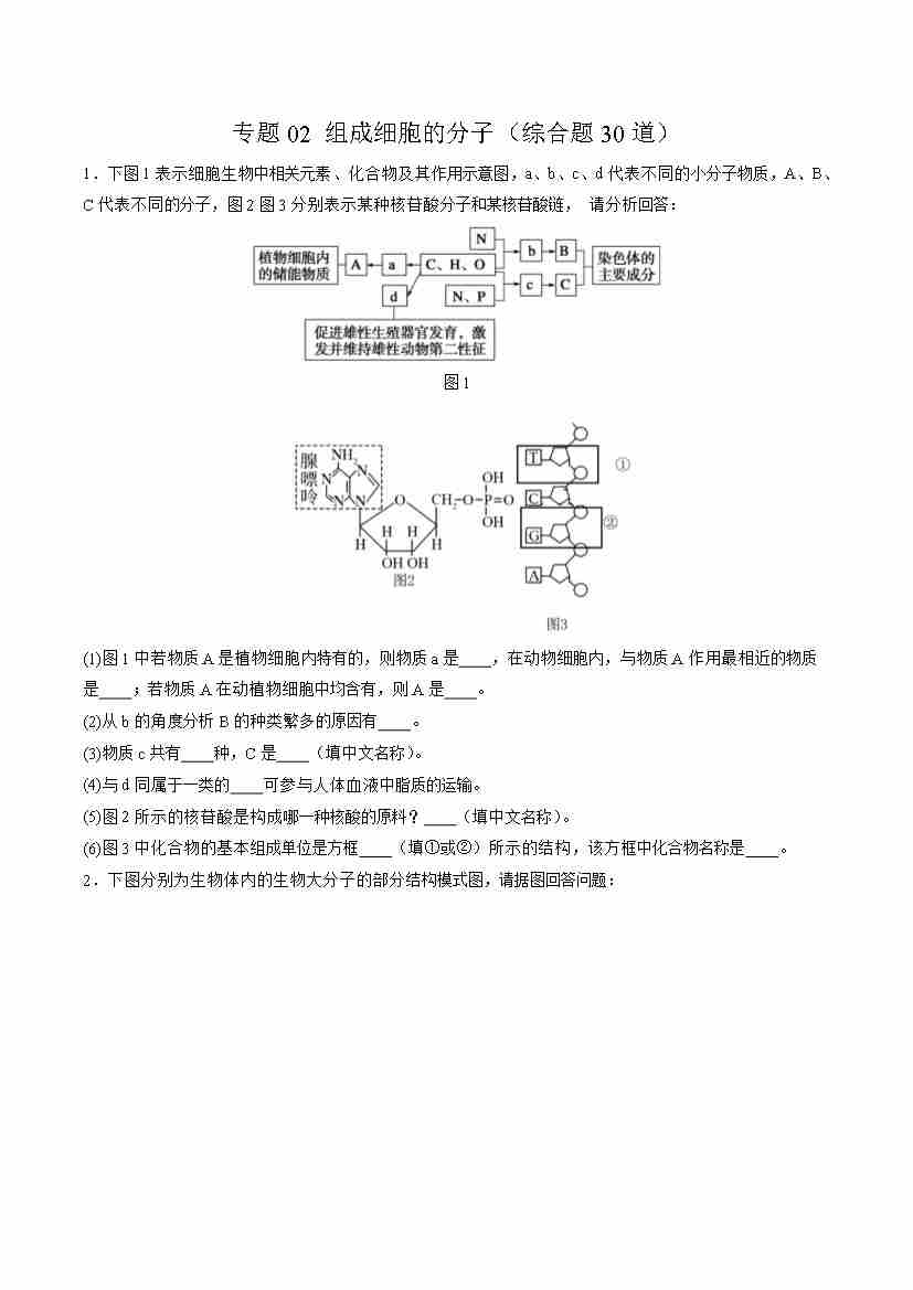 专题02 组成细胞的分子(综合题30道)(学生版)