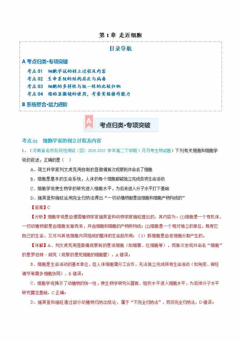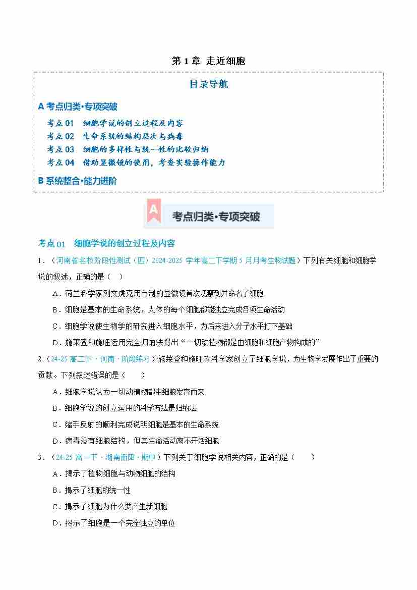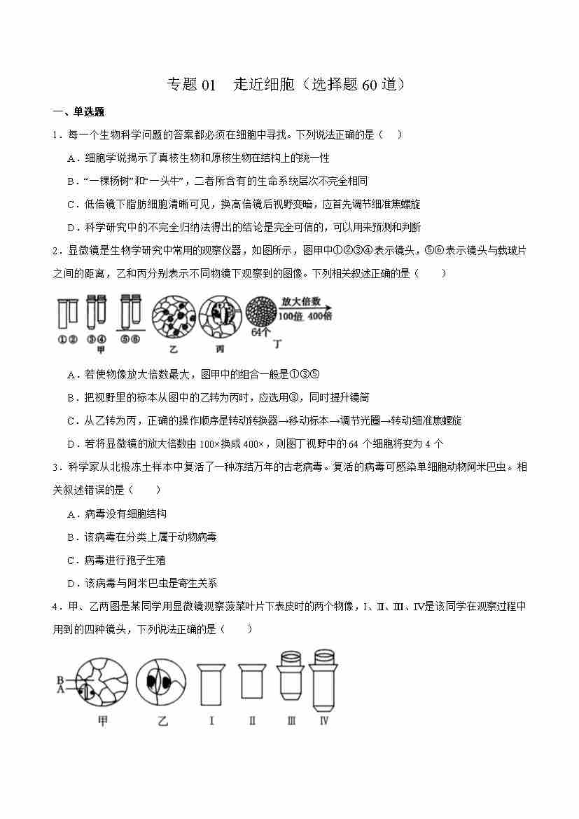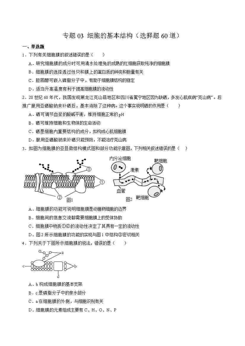 专题03 细胞的基本结构(选择题60道)(学生版)