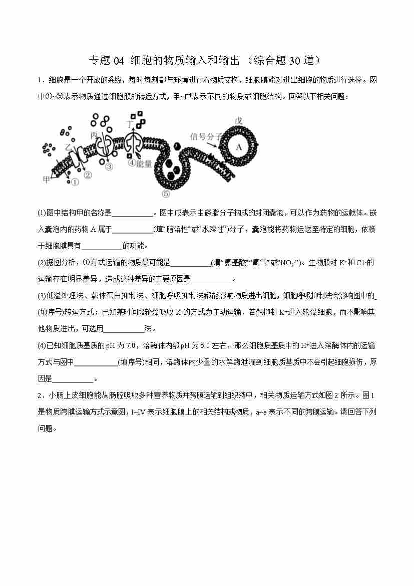 专题04 细胞的物质输入和输出(综合题30道)(学生版)