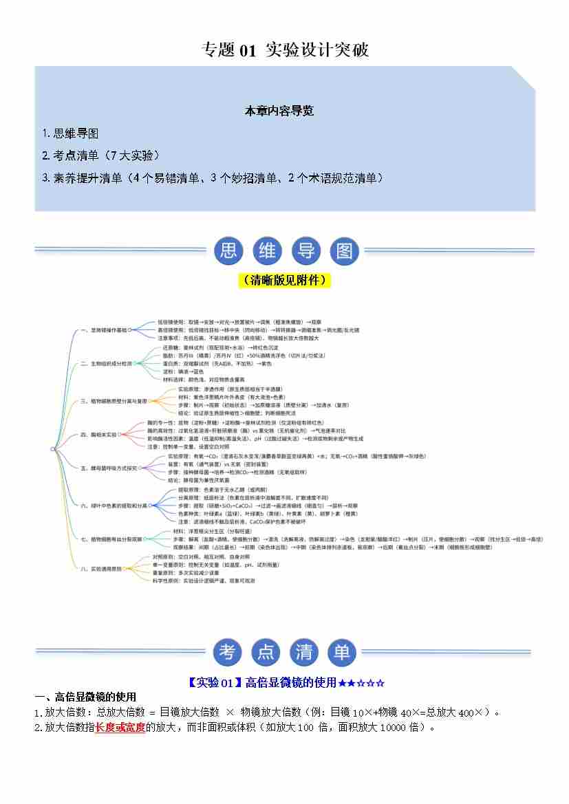 专题01(知识清单) 实验设计突破 (期末知识清单)