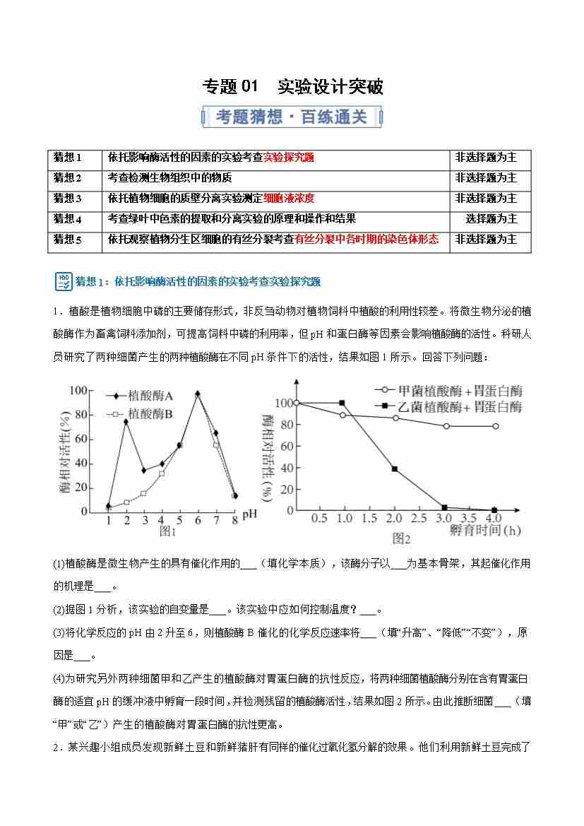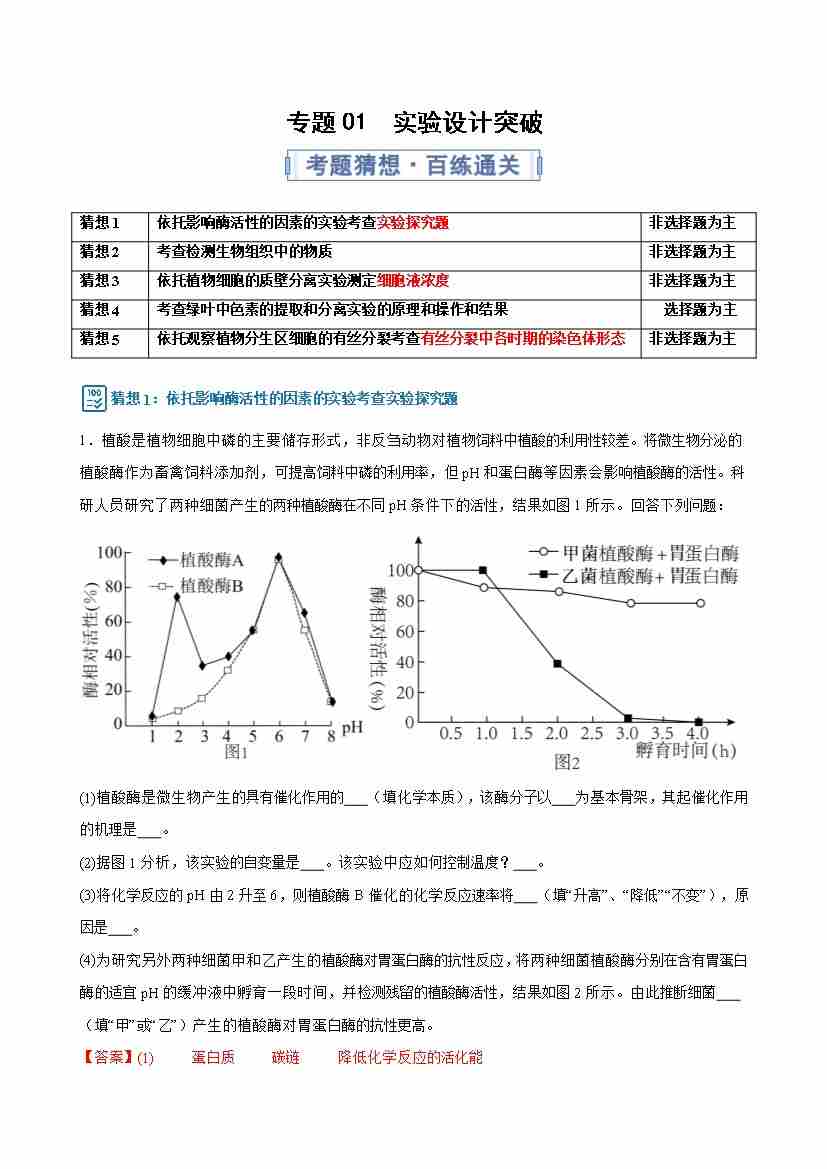 专题01(考题猜想) 实验设计突破(期末专项训练)(解析版)
