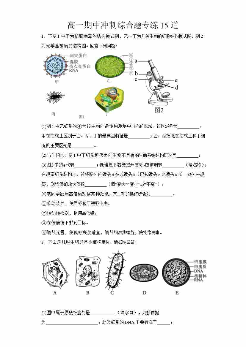 期中冲刺(综合题专练15道)(学生版)